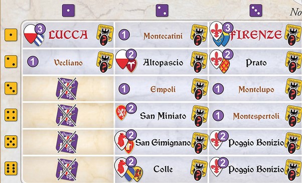 - Then the Guelphs choose and shift Firenze’s Service marker from box “5” to box “6”.
