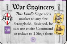 The Guelphs after their losses in the north will press the offensive against the rebel Cortona in the east. Arezzo Levies WAR ENGINEERS so that its army will be able alone to effectively Besiege Cortona, adding Siege markers there as a lone Lord even though it is a Size “2” Town.