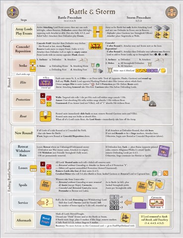 With all Colle’s units once again Routed, the Lord himself Routs. If no one Concedes the Field, the Battle ends when all of one side’s Lords are Routed. We proceed to “Ending Battle/Storm” on the ai sheet. (Left column concerns Battle.)