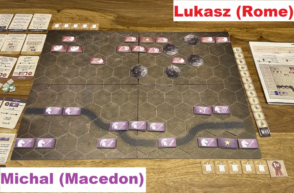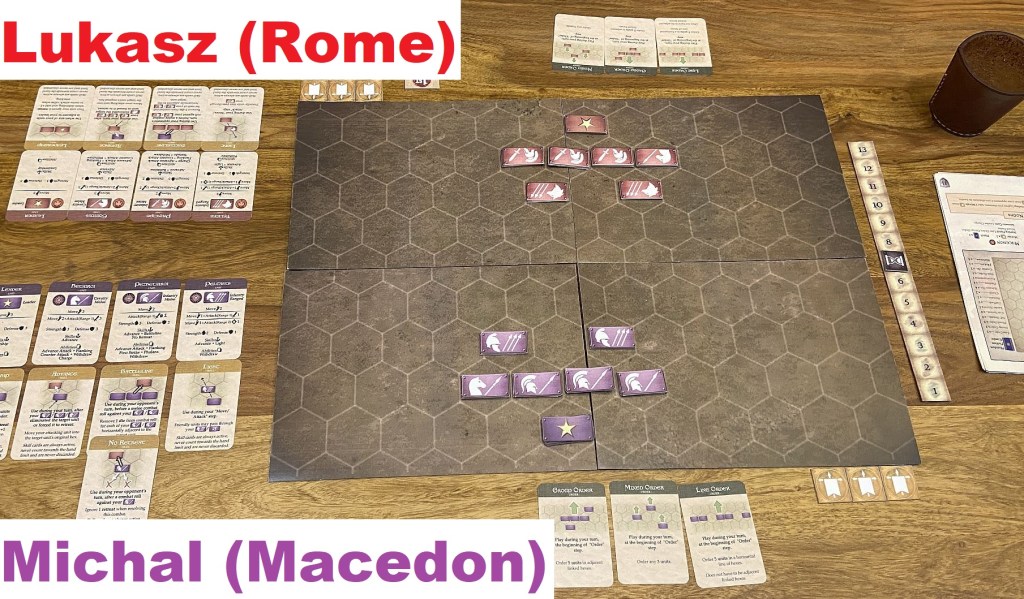 Recently I was contacted by Hasan Ali Hatipoğlu, a great fan of Commands and Colors system. He was (and he still is) designing his own game inspired by this great series. You know that I love C&C games, so it did not take me long to get the prototype of Battle of Legends: Rome vs Macedon. I had a chance to play all of its base scenarios, familiarizing in the process with the mechanics, components, rules and theme. Below my report, impressions as well as details on the design itself.