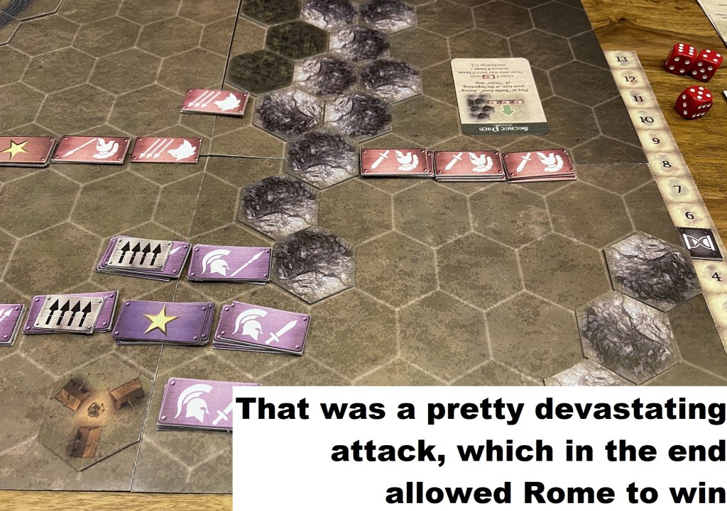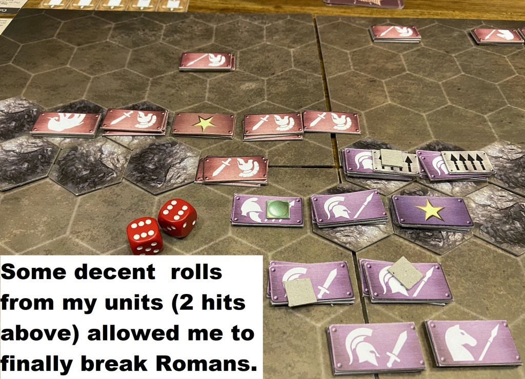 A truly climatic clash of Roman Legions and Macedonian Phalanx in which the latter was surprisingly decisively victorious. The quick occupation of hills, proper formation usage as well as hit with cavalry during the end of scenario allowed for that victory!
