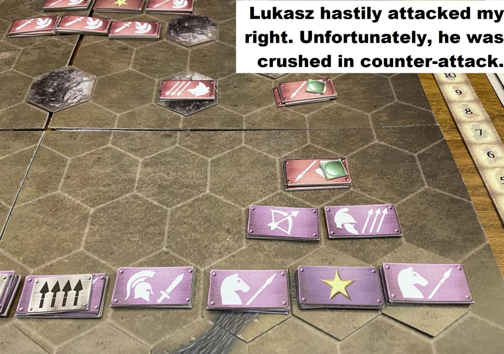 A very interesting tactically scenario, in which Lukasz flanking maneuver decided the day (just as in history). First time I used my Phalanx ability extensively here and appreciated how strong Melee Infantry can be in attack.