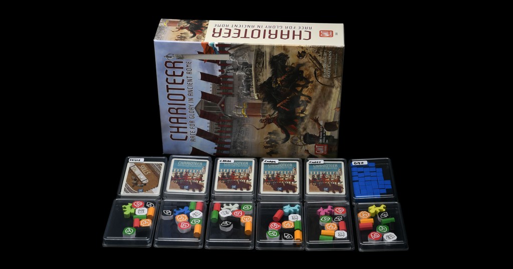 Yet one more game by Matt Calkins, designer of Sekigahara. You really can see that those games are being developed out of the love for our hobby and they are very well thought-through. Here, we are getting a huge box full of various components; at least part of them needs a proper sorting and placement in the box for easy access during the game. That is exactly what was prepared here – for cards, for starter sets, for damage tokens.