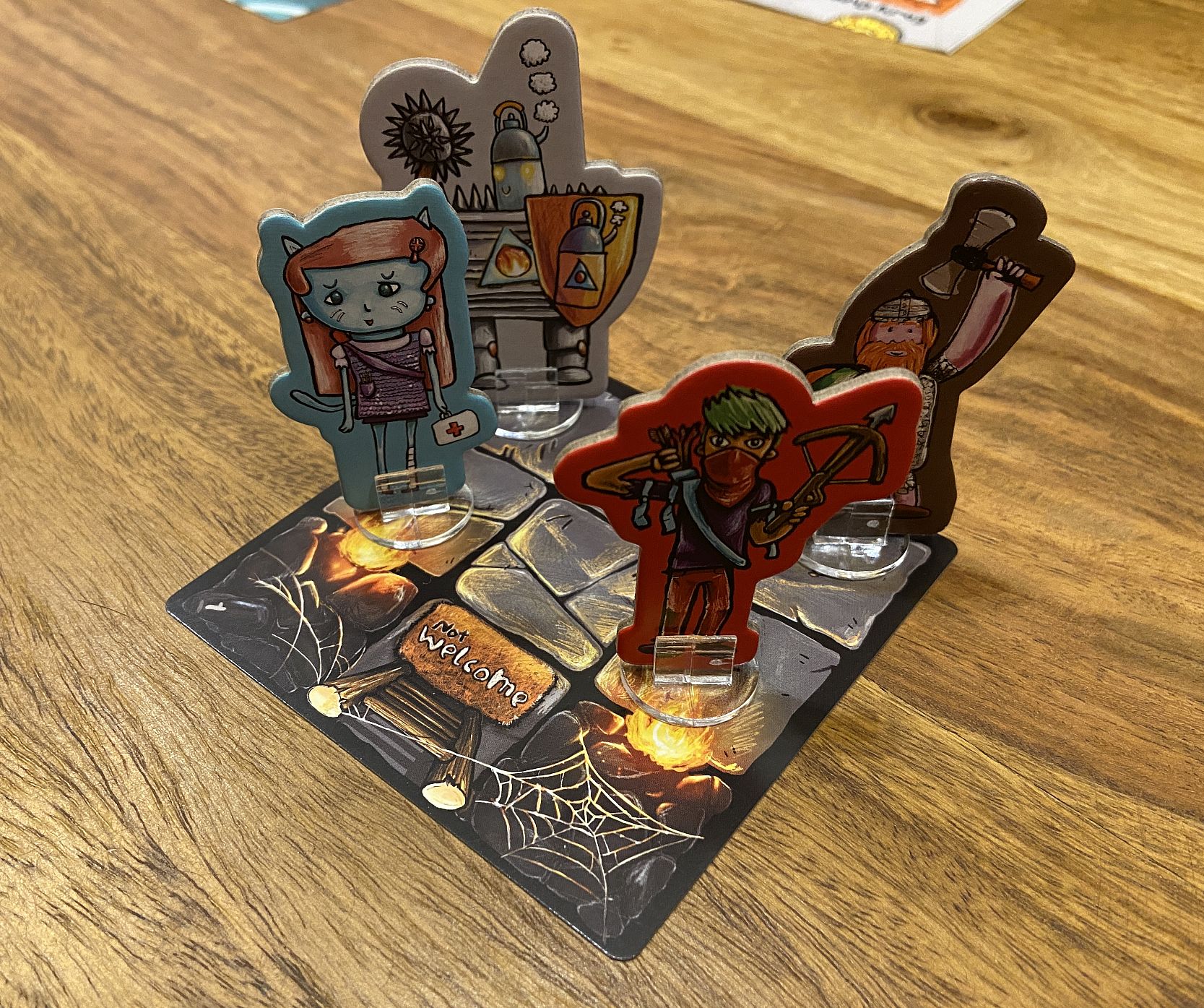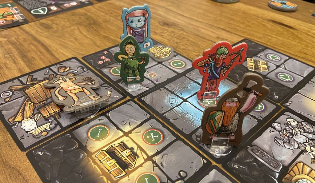 So let me tell you what CoraQuest is. It is a truly exciting and accessible co-operative dungeon crawling game for one to four people, aged six and up. In this title the players work together to guide four adventurers (you can choose from much larger number of potential characters) exploring a dungeon, avoiding traps, finding treasure, fighting monsters, and sometimes rescuing a gnome called Kevin (not once, poor fella, problems tend to find him pretty often).