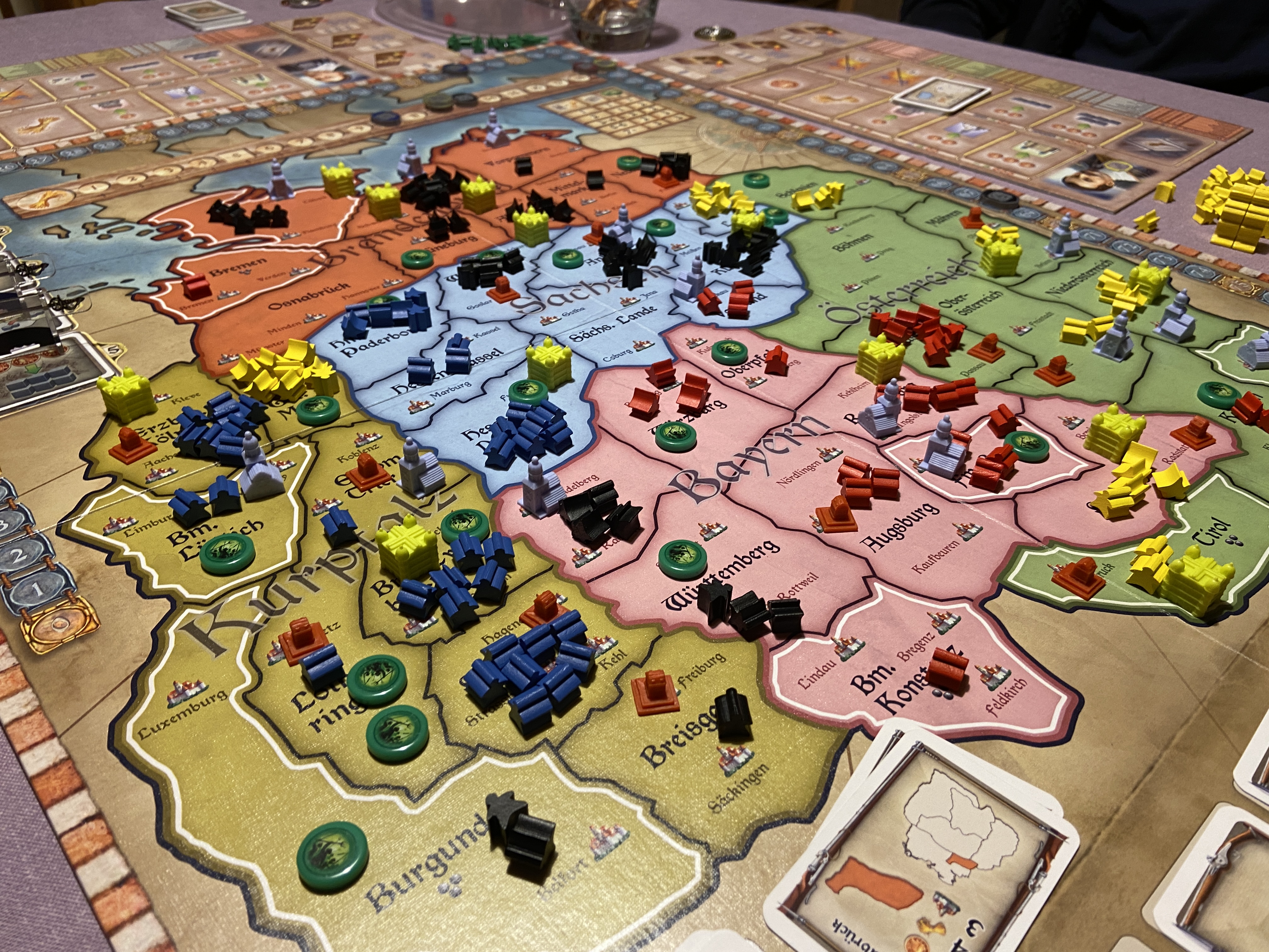 The Big Box includes the base game and 4 expansions: Emperor’s Court, Landsknechts, Military Leaders & Office.