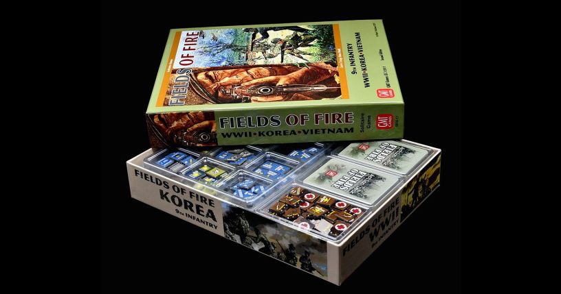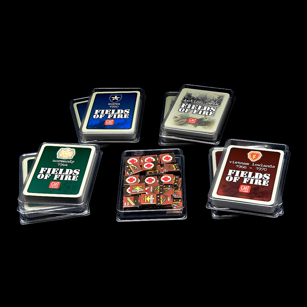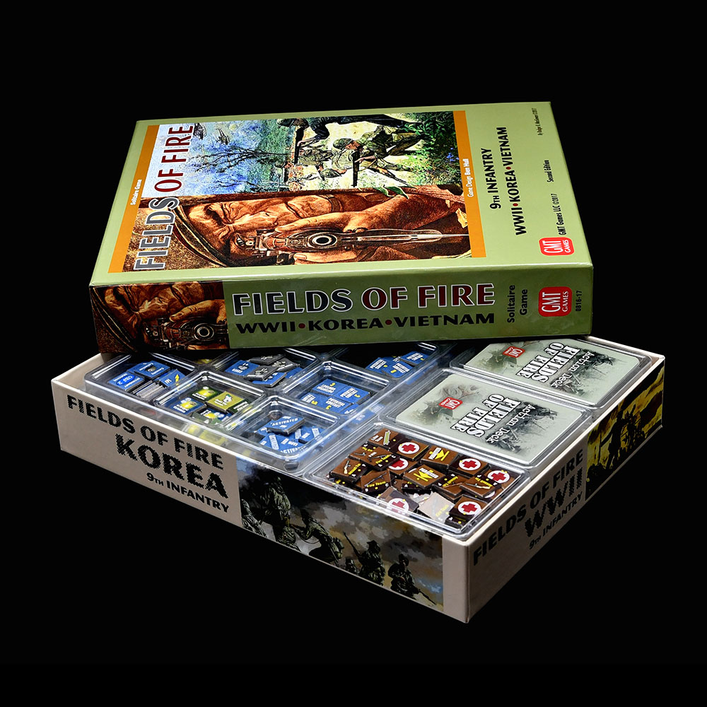 Something I am most proud of this month are the new (Fields of Fire) and improved (Fields of Fire 2) sets for those fantastic solitaire games. The proposed solution allows for all components – cards, counters, rulebooks, etc. – to fit perfectly within the box. Period. That took a lot of effort to build this but now I can proudly announce that even in small, 2 inch box, you will be able to store both games nicely!