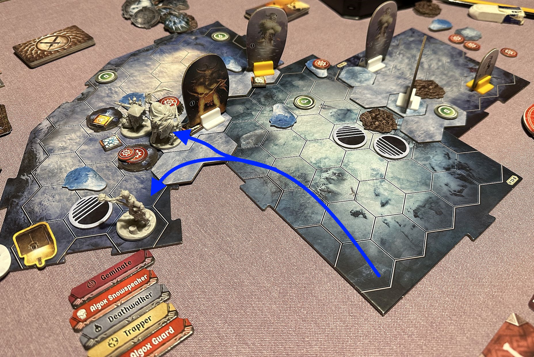 It will be a three-scenario adventure. First, we already won (#114 Work Freeze) and now will play second. The main goal is to protect 7 pillars which were erecter by Pinter’s team in order to build this path for traders. However, some Algox tribe is not very happy about it and will be attacking us through 10 long turns to destroy all those pillars. Once all of them are gone, we lost. On top of this, enemy will get reinforcements in 5th and 8th turns