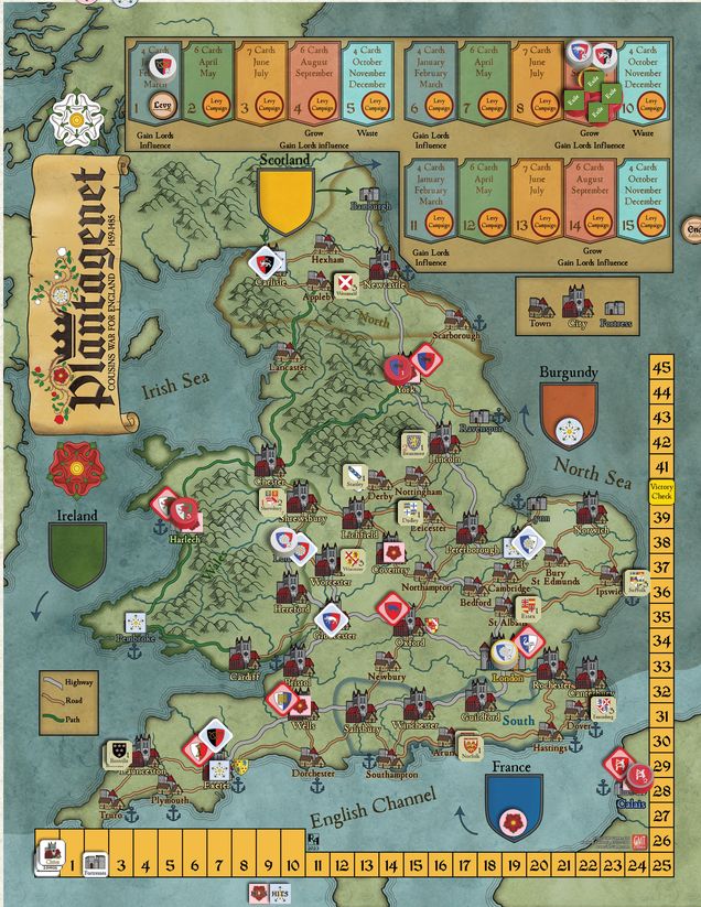 This scenario has two special rules that are very important: If Warwick is sent into Exile in a defensive battle or killed, Margaret and her allies Oxford, Somerset, and Exeter (who start at Turn 9 on the Calendar) will instantly arrive in England, making things way more difficult for the Yorkists, as they have to fight a huge number of Lancastrian armies at once.
