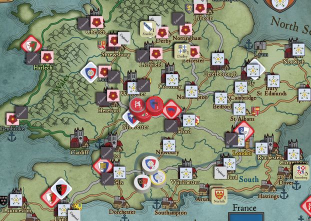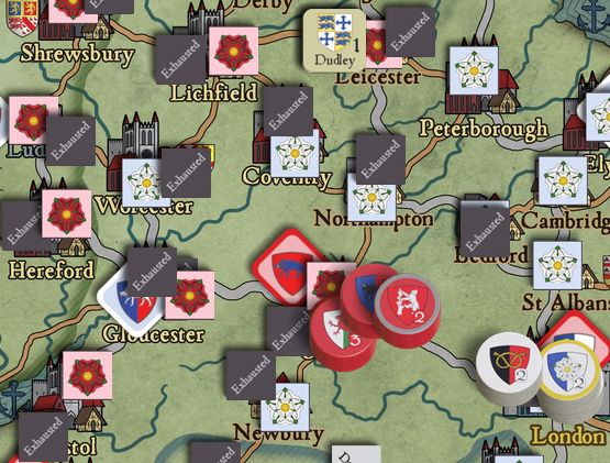 The Yorkists protect London, but most of the Midlands are now out of resources.