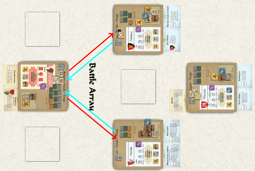 Plantagenet’s situation can always change drastically as we saw it in the first War, during which the Yorkists came back; in the second War, which the Lancastrians ended up winning by 1 Influence point after 15 Turns; and in the Third War which the Lancastrians would have won by beating all enemy heirs had Warwick’s Retinue routed (The outcome ended up hanging on a single die roll!)