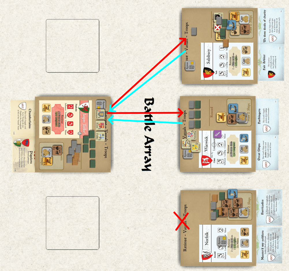The three scenarios may seem to play out quite the same but they are actually quite different: While the first war is focused on getting Lords on the field and both sides have a big array of lords on who to call, things are more difficult in the second War.