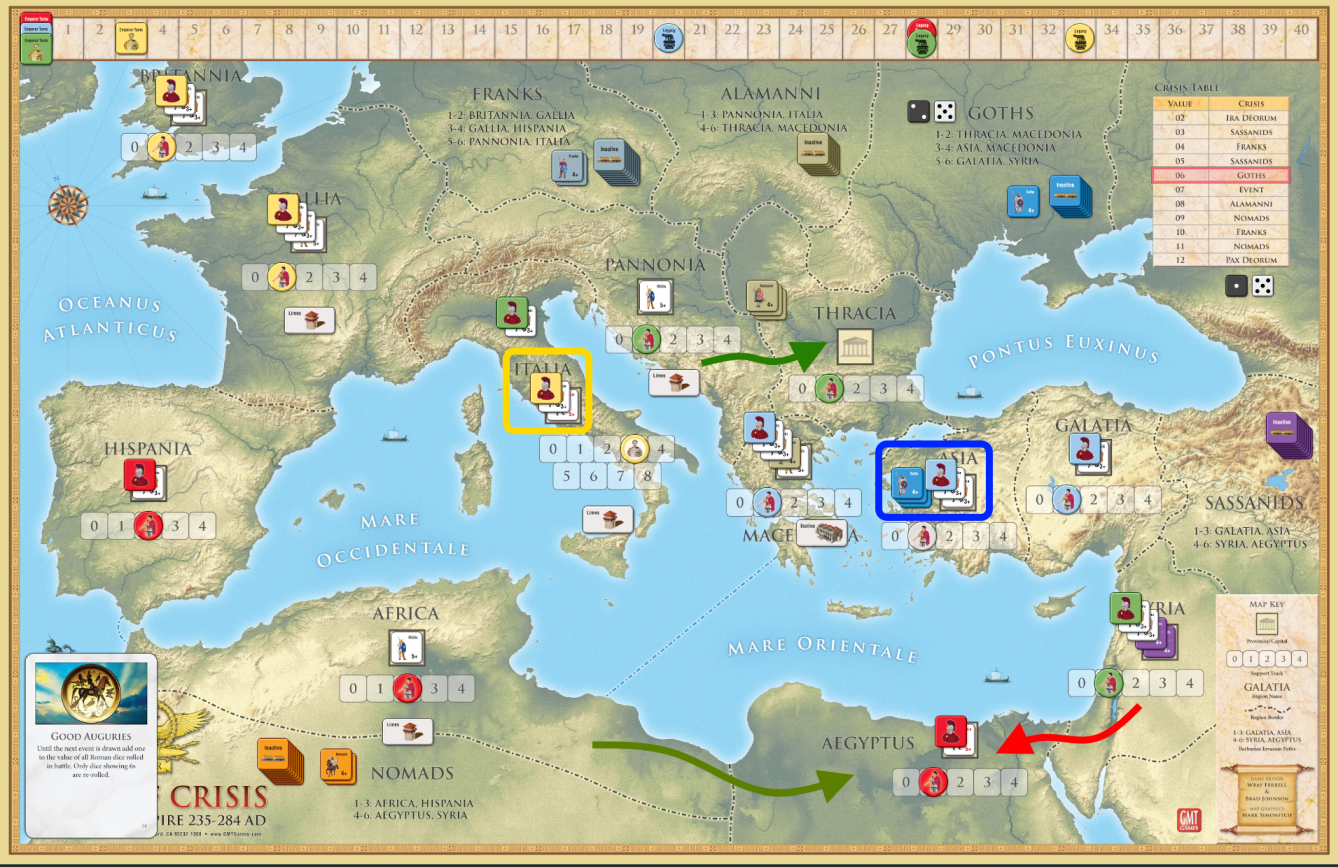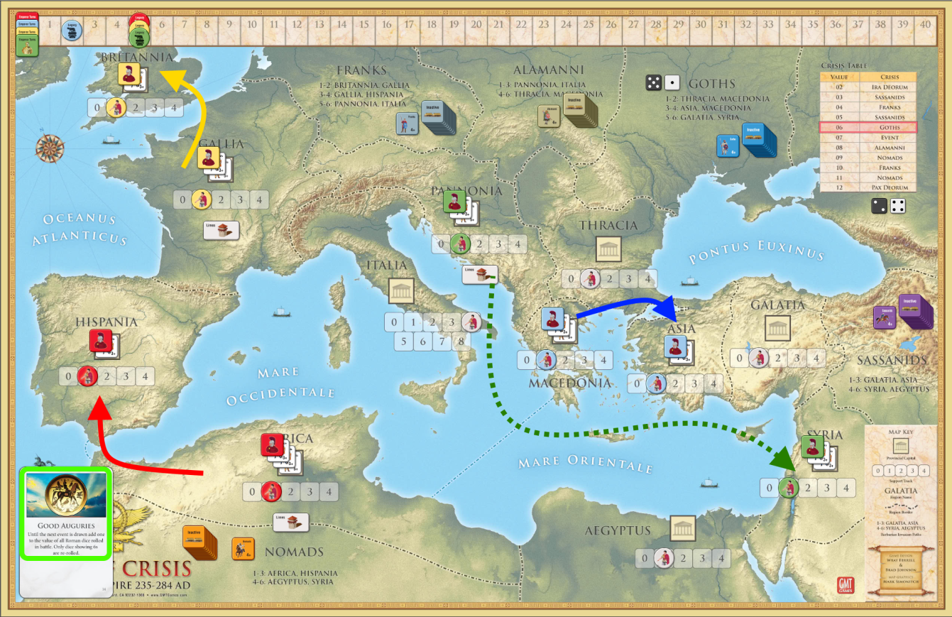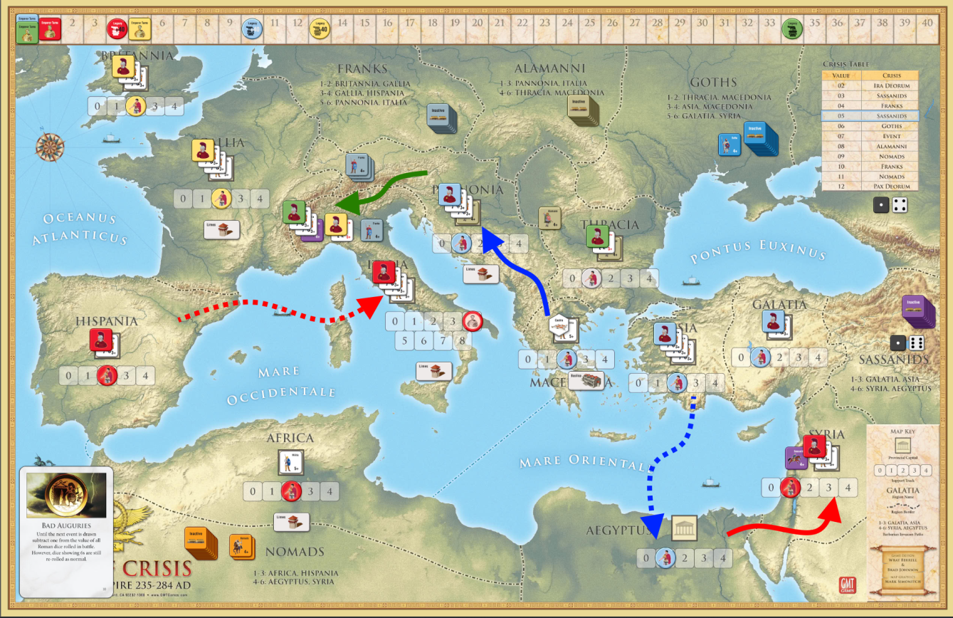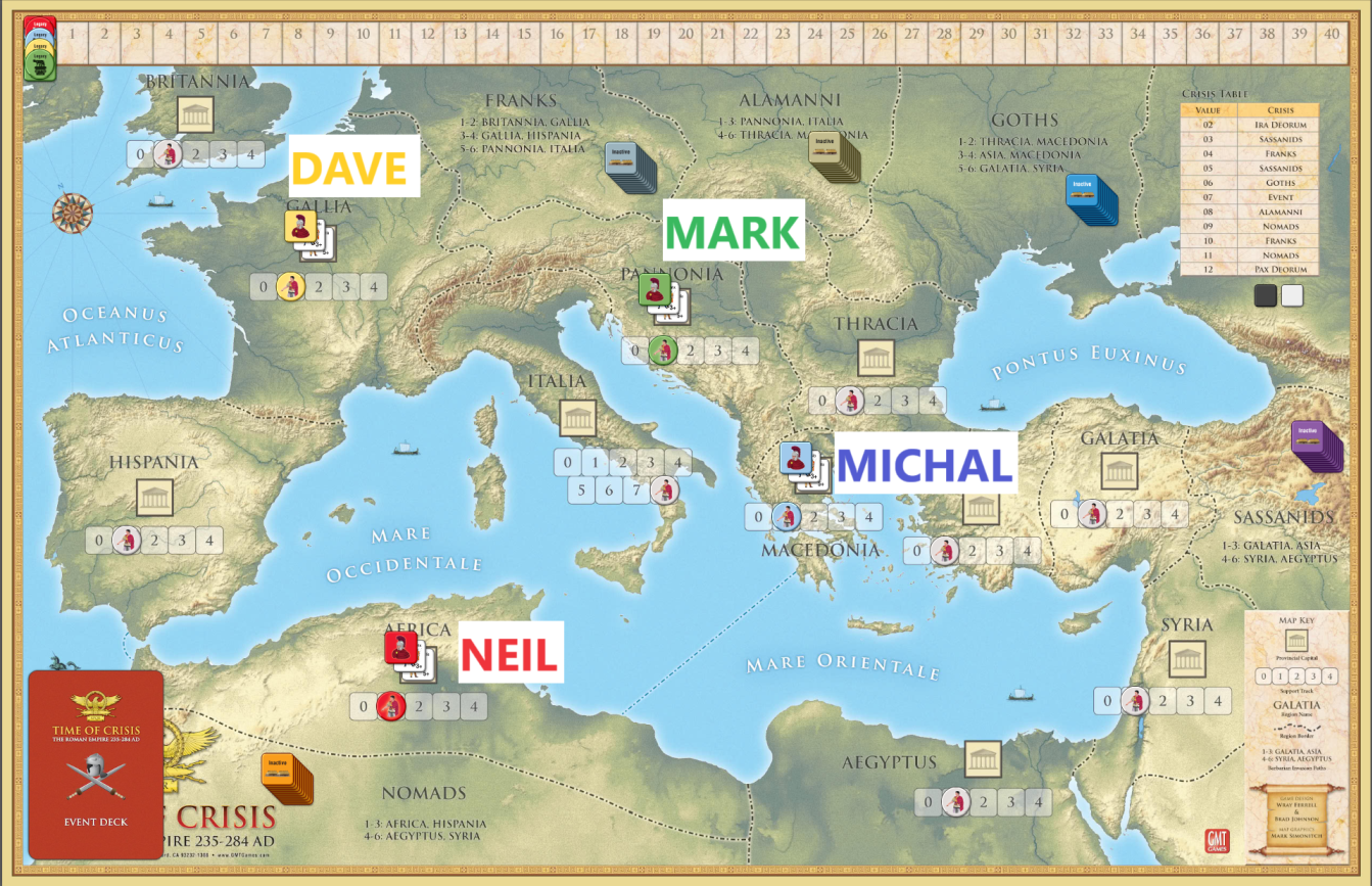 Before going straight to the session report, let me spend some time explaining the game in more details. Third century AD was not the happiest era for the Roman Empire – to say the least. Actually, it was almost end of its might. Torn by internal squabbles as well as external barbarian invasions it was at the verge of collapse.