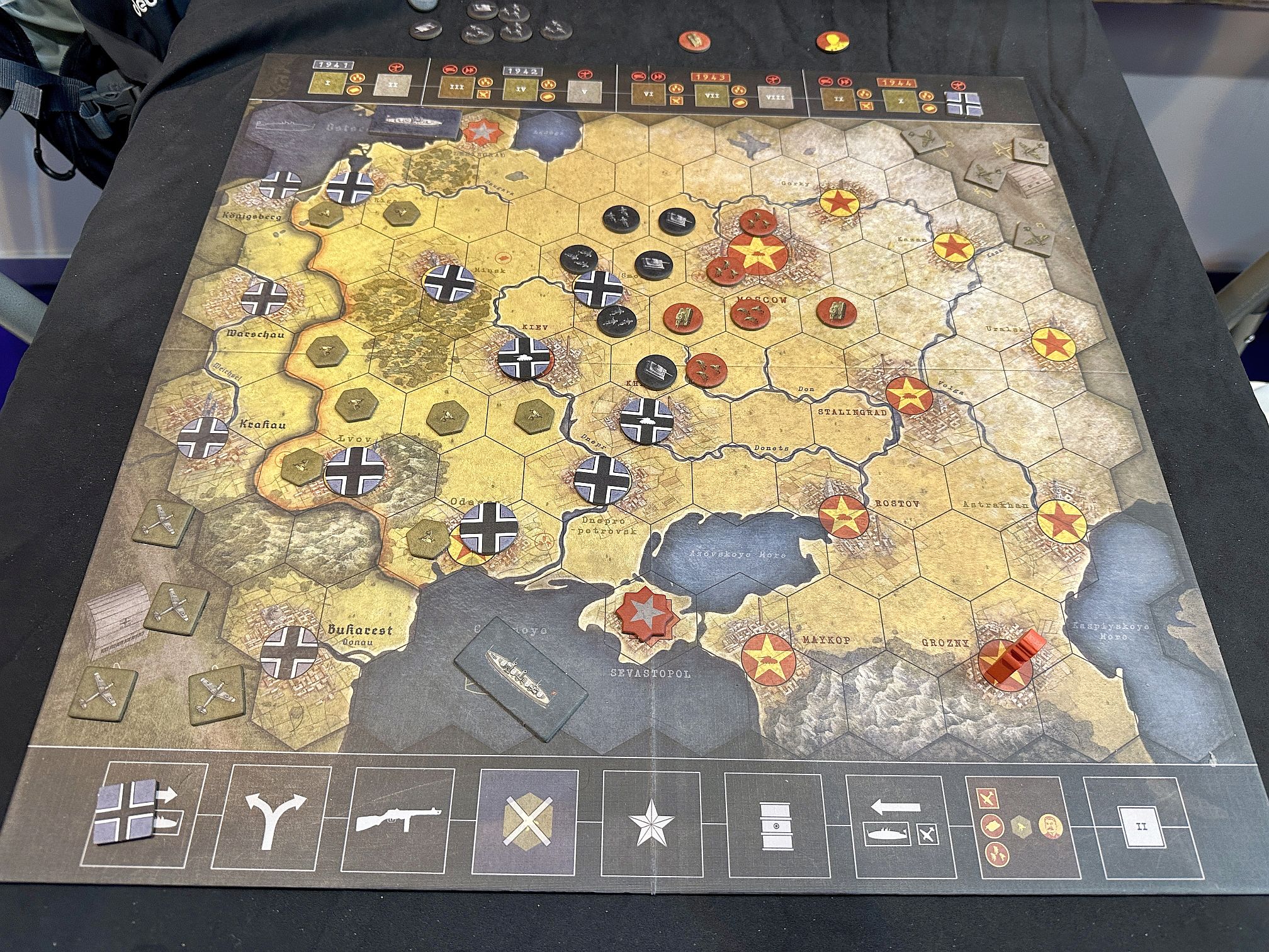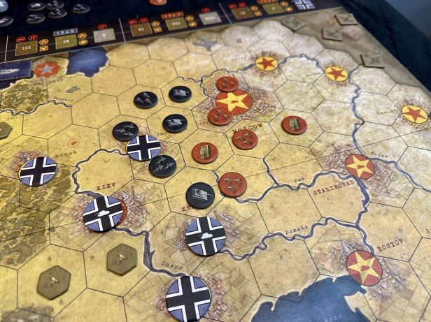 The game is played over the course of four years, each consisting of three markedly different seasons, two of which – the aptly named Mud and Snow – inhibit the use of some actions and units. The movement and its range are predicated on the current season, unit type and the ability to create and maintain a chain of units. The Germans have to either hold a set of objectives by the end of 1944 or capture the Soviet leader, Stalin himself. The Soviets too can achieve a sudden victory, but only if they manage to seize one of three initially German-held cities.