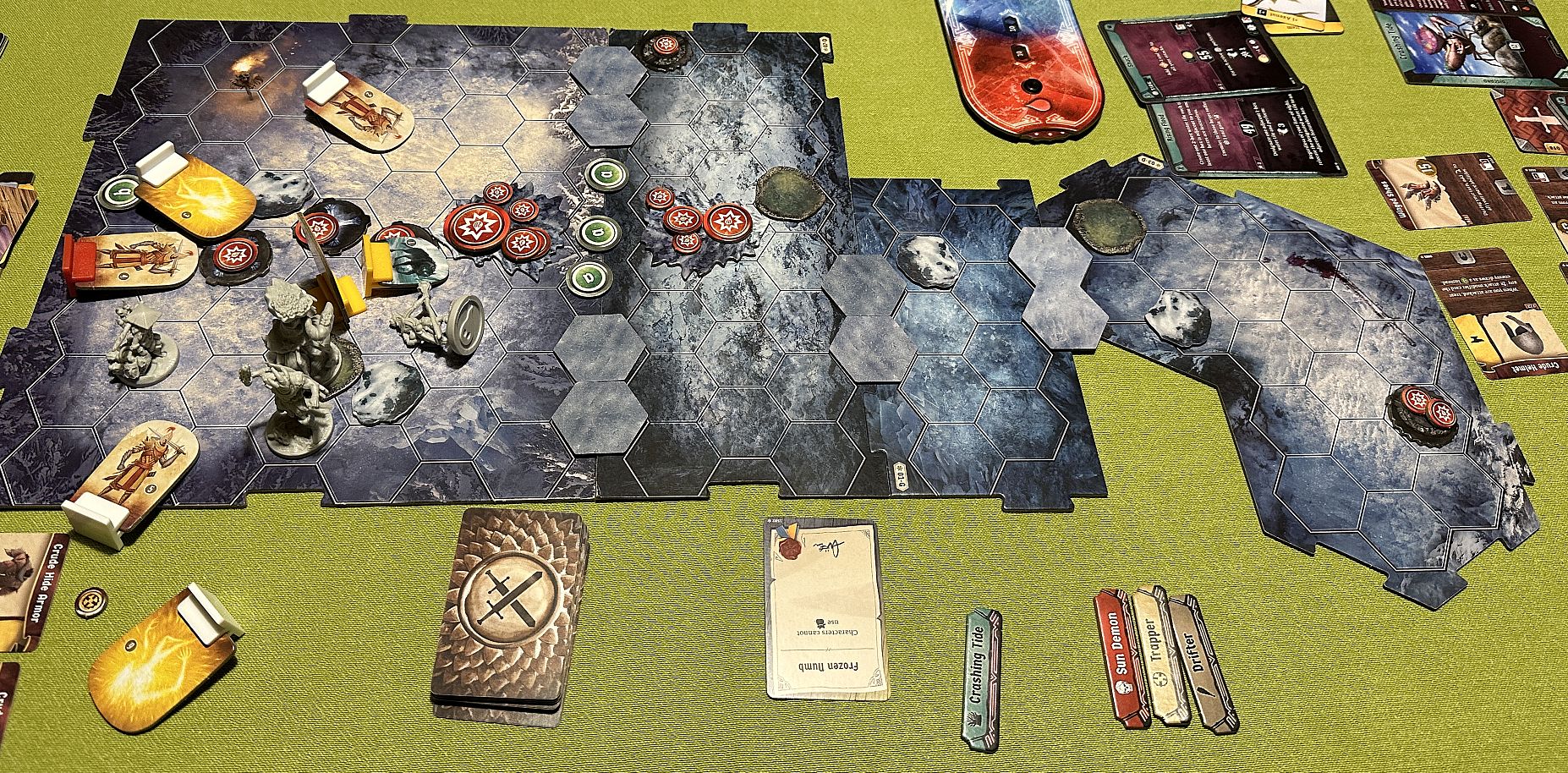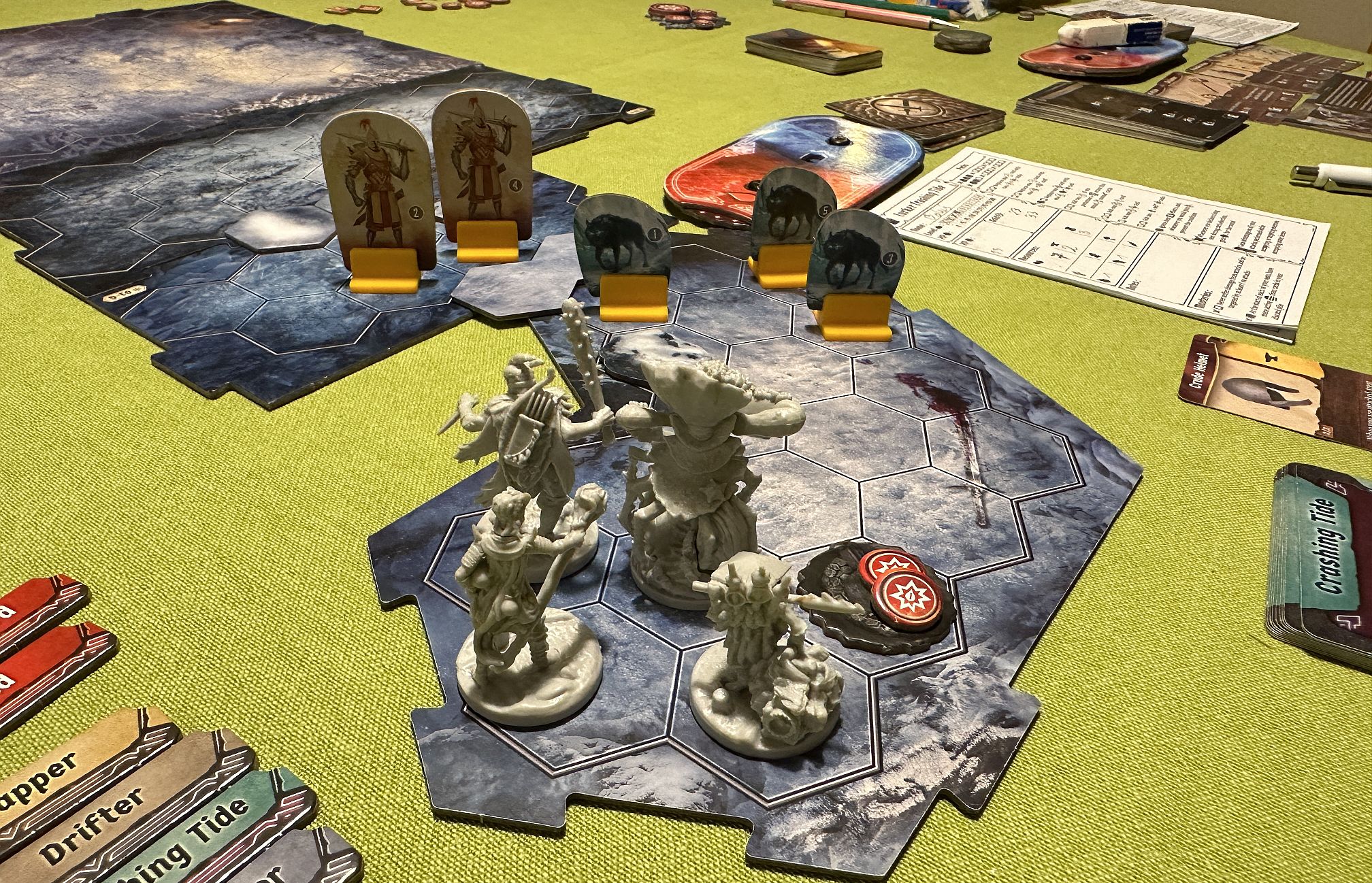 Still, there was some unfinished business to complete which we could not leave just like that. Namely, the retirement of Drifter. His personal goal was to collect some resources and then play two-scenario mini-campaign. We managed to accomplish the initial adventure – #69 Sacred Soil – and then our four-player team permanently collapsed to three.