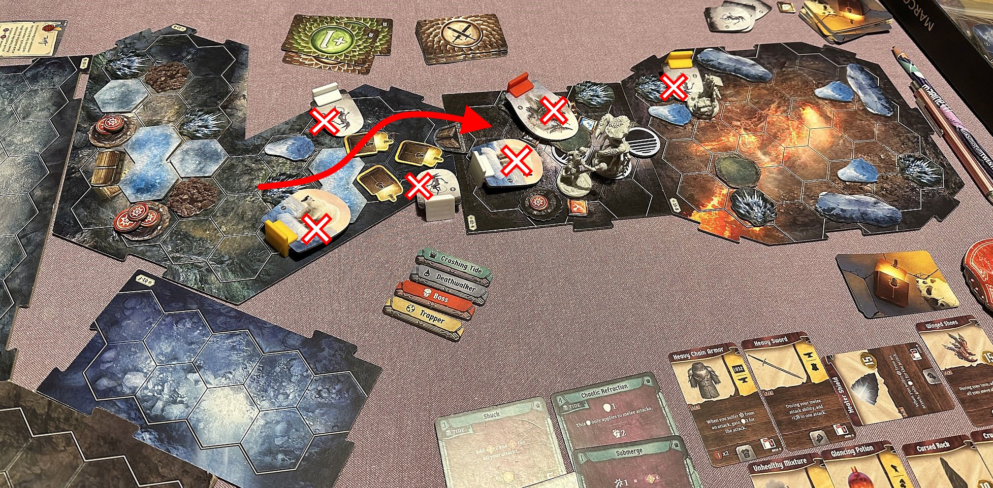 The poor monster was unlucky – we decided for quick, brutal, and hopefully fast way to complete the scenario – attacking Hungry Maw. We thought – one room, quick fight, and we move on. Of course, as always in Frosthaven, we were quickly corrected.