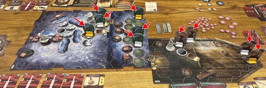 Sometimes I have a feeling that scenarios in Frosthaven are made artificially difficult. Yes, that was the idea – to have more challenge than in comparison to Gloomhaven. However, sometimes it is down in such crude, un-fun way – if not for special ability of my character it would be enormously difficult to win here.