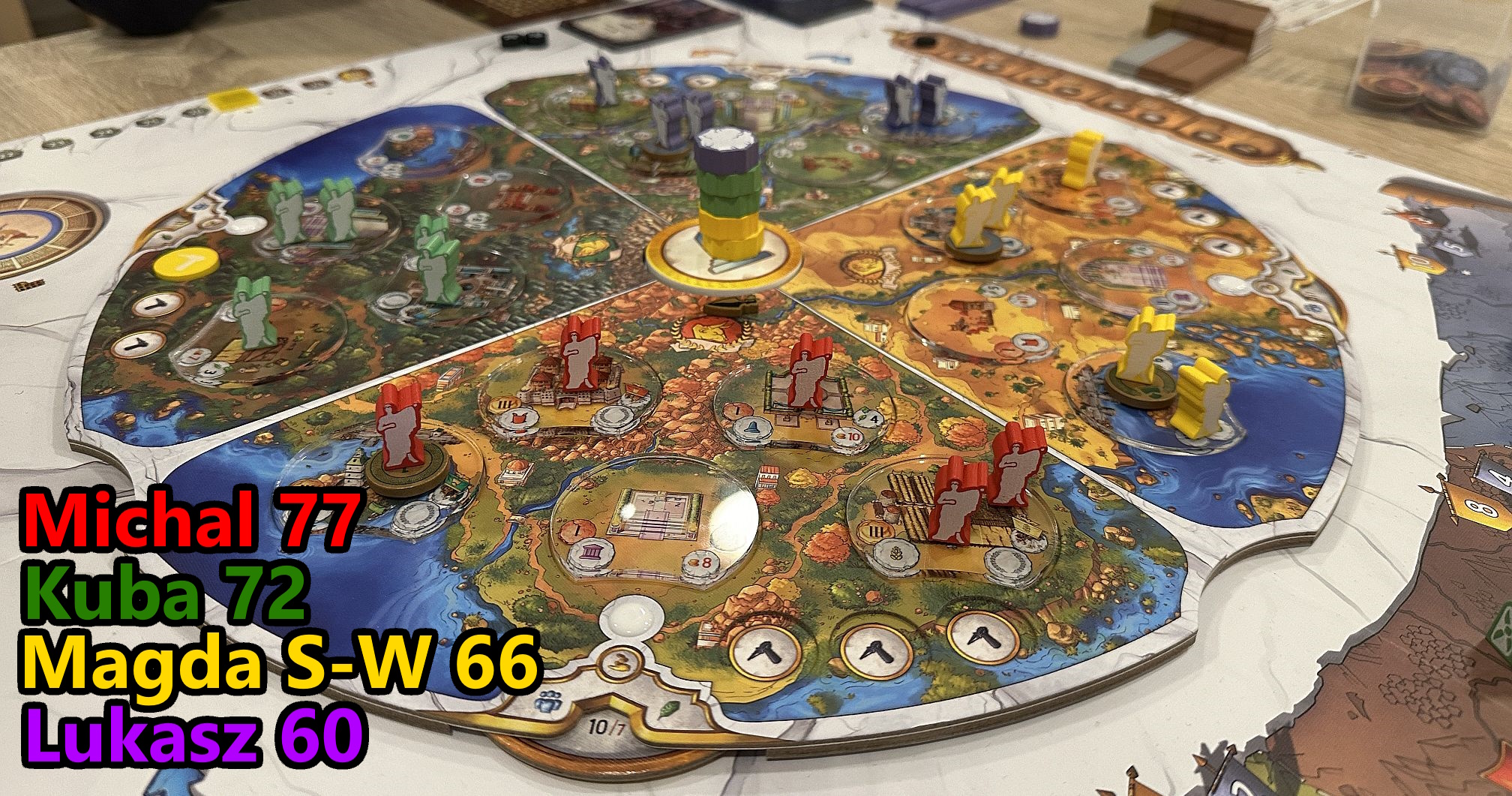 To była pierwsza planszówka wyjazdu – gdzie Magda pokonała Natana. Potem zagrana był jeszcze jedna partia, między Filipem i Magda, gdzie ten pierwszy tryumfował. Jestem pewien, że to nie ostatni raz gdy widzimy ten tytuł na tym wyjeździe – jest szybki, ma kilka strategii do wygranej i wygląda bardzo estetycznie.
