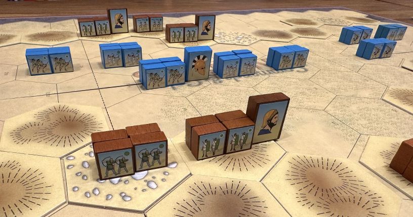 - Due to the excellent ability of the Maccabeans to operate in loose order, any order requiring linked hexes, such as a Line command or Leadership card, may have one vacant hex as part of the chain.