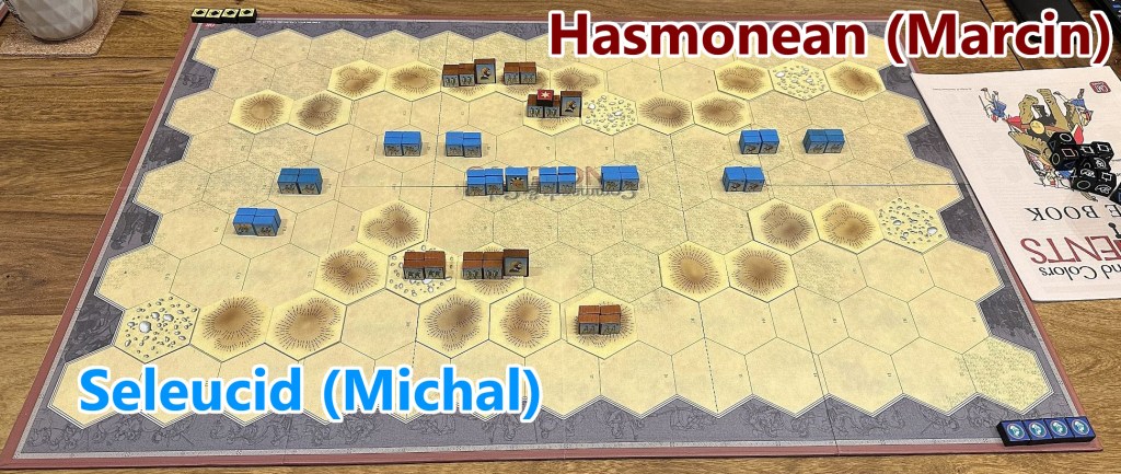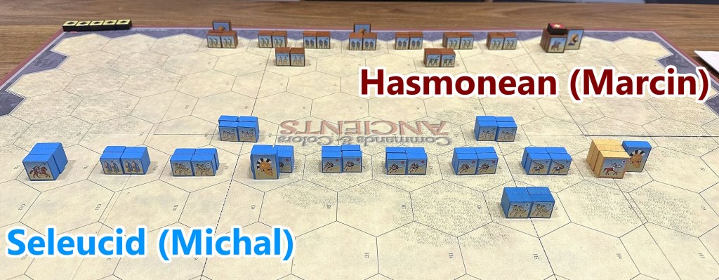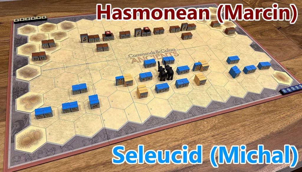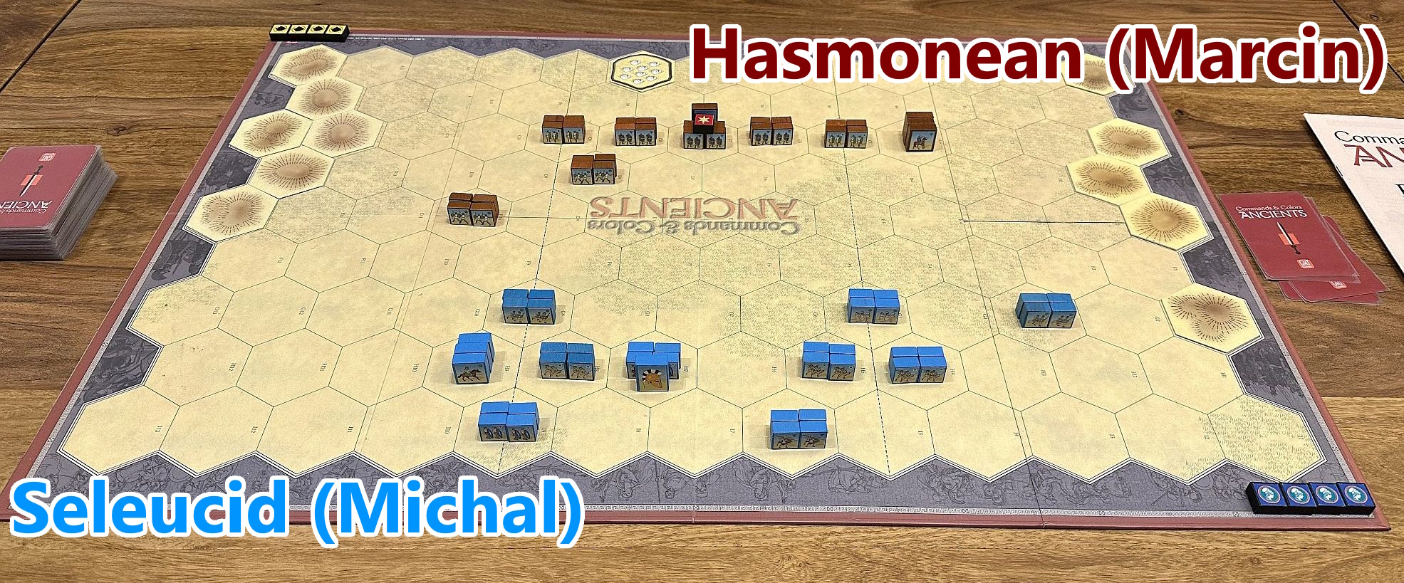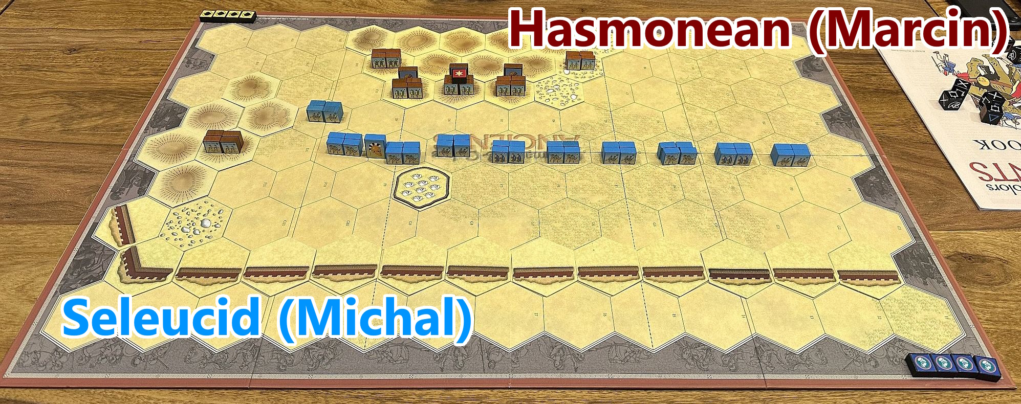 We decided to play the set of seven battles created by irreplaceable and prolific C&C Ancients fan-made scenarios designer Jim Duncan. The Maccabean Revolt (167-160 BC) mini campaign can be found of course on https://www.commandsandcolors.net/ webpage, where fans community for that title meets and cooperates.