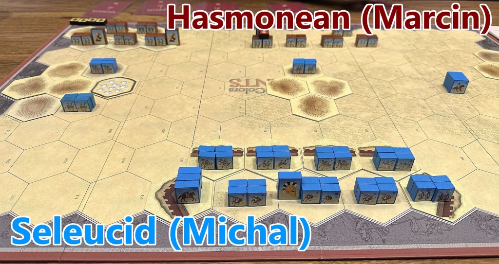 As a history buff, I care about story the game tells as much as for its mechanics. So let me write couple of sentences about period and events. The Maccabean Revolt was a pivotal event in Jewish history and unfolded in the 2nd century BCE under the reign of the Seleucid Empire. Antiochus IV Epiphanes, the Seleucid king, aimed to Hellenize his empire, imposing Greek customs and prohibiting Jewish religious practices. This led to widespread discontent among the Jewish population.