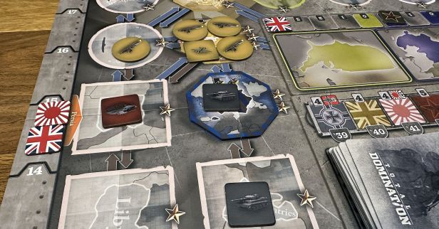 Now, another great discovery of 2023 – actually title I get to play only in last two months of this year. Total Domination is a strategic wargame for 2-4 players and playable in 90 minutes. Players command the military forces of Germany, United Kingdom (UK), Japan, and Soviet Union (USSR) during the Second World War. Through smart play of your operation cards, you will help your team (Allies or Axis) earn Victory Points (VPs) and deny them to your opponents by controlling territories, conducting diplomacy, and researching technologies. All of this with no dice!