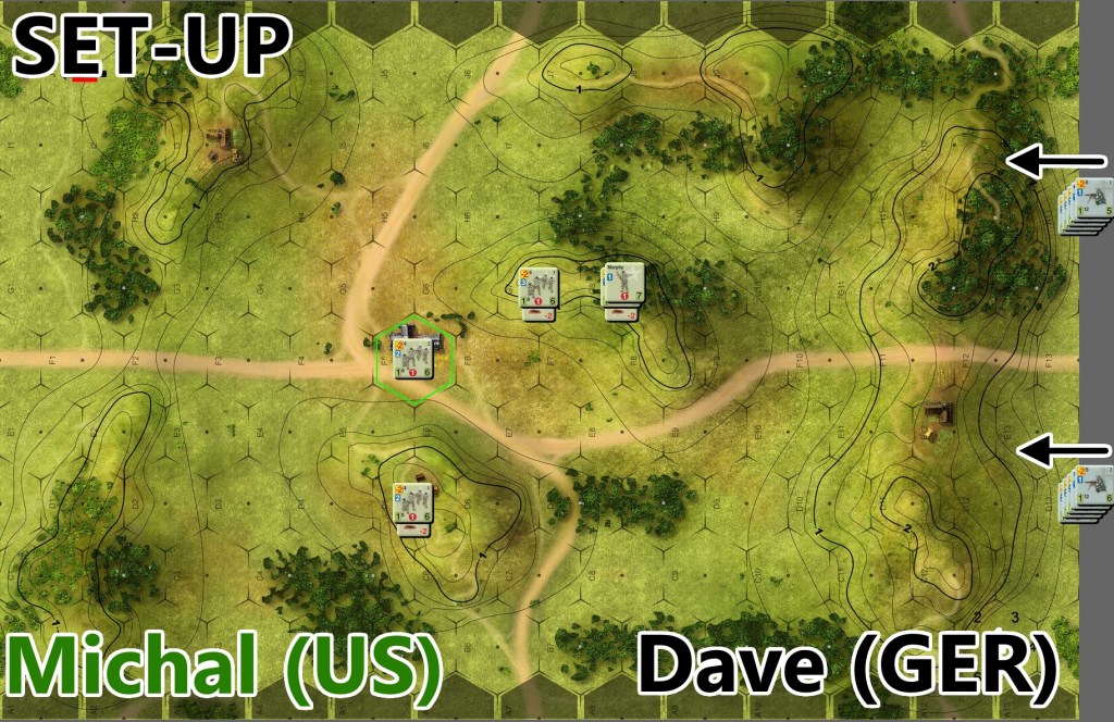 Sides: this will be a standard attacker vs. defender type of scenario. Set-up is more or less straightforward. We decided that Dave will be leading German Platoons (third time in a row 🙂 ) entering from off-map and I will have possibility to command the US forces grouped around the Church in the middle of the map.
