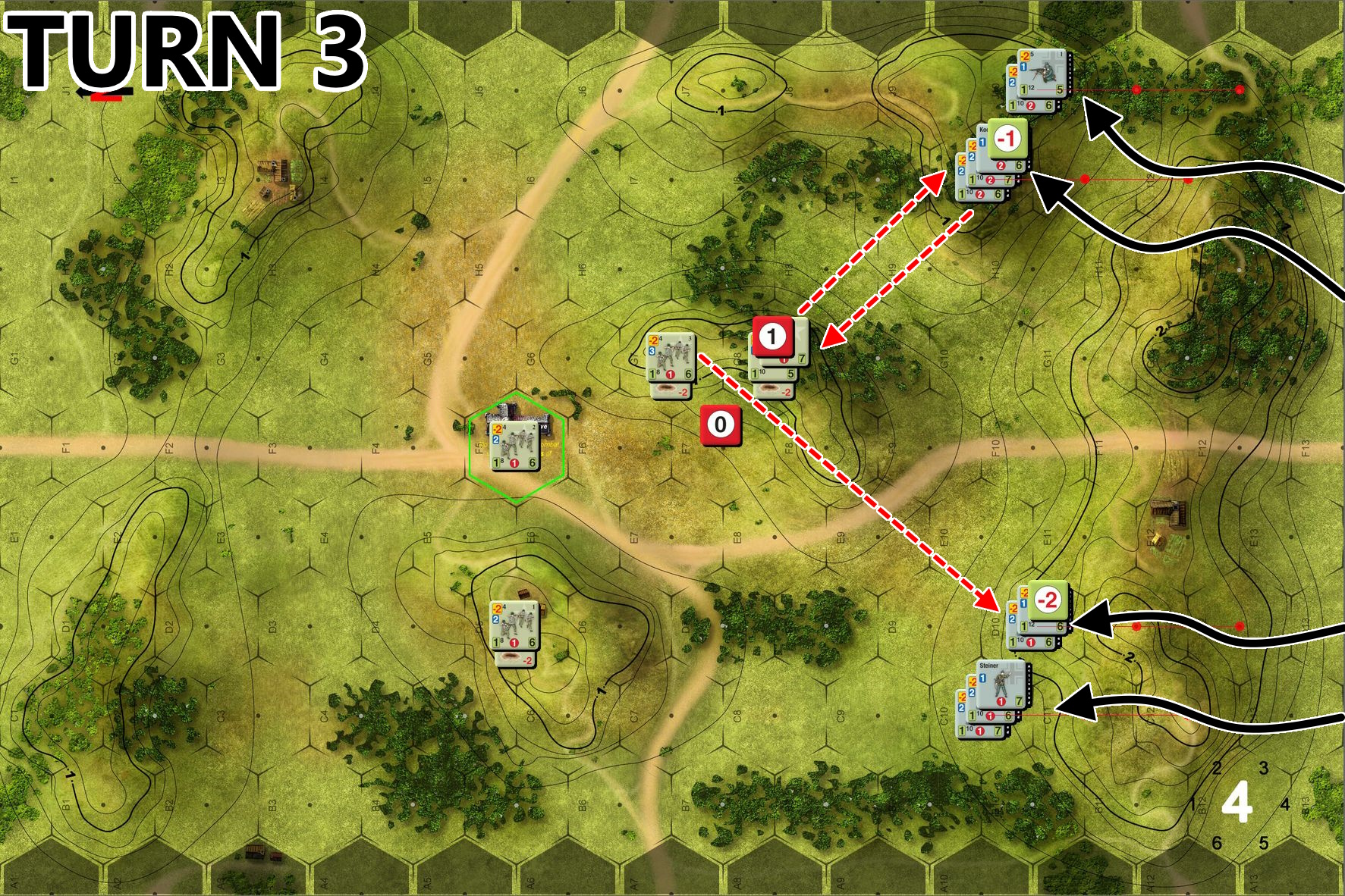That was pretty action-packed session – well, you would expect exactly this from short-range, intense infantry and small units engagements. I will use the stills from the VASSAL module depicting what happened, axis of attack and comment on some key developments. Enough to say, it was brutal. This time for US forces…