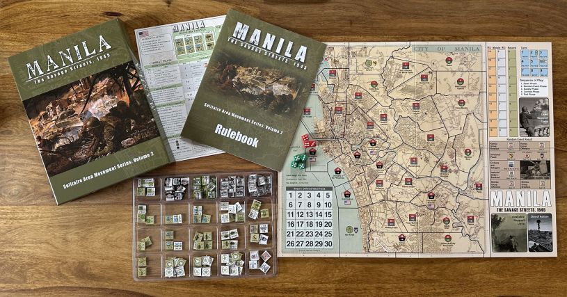 Manila: The Savage Streets, 1945 puts the player in charge of the attacking and far more mobile American side while the game system handles the defending and largely static Japanese side. Each turn presents new and unique challenges for the player in the form of random events, uncertain supply deliveries, and unknown Japanese area strengths and defensive strategies.