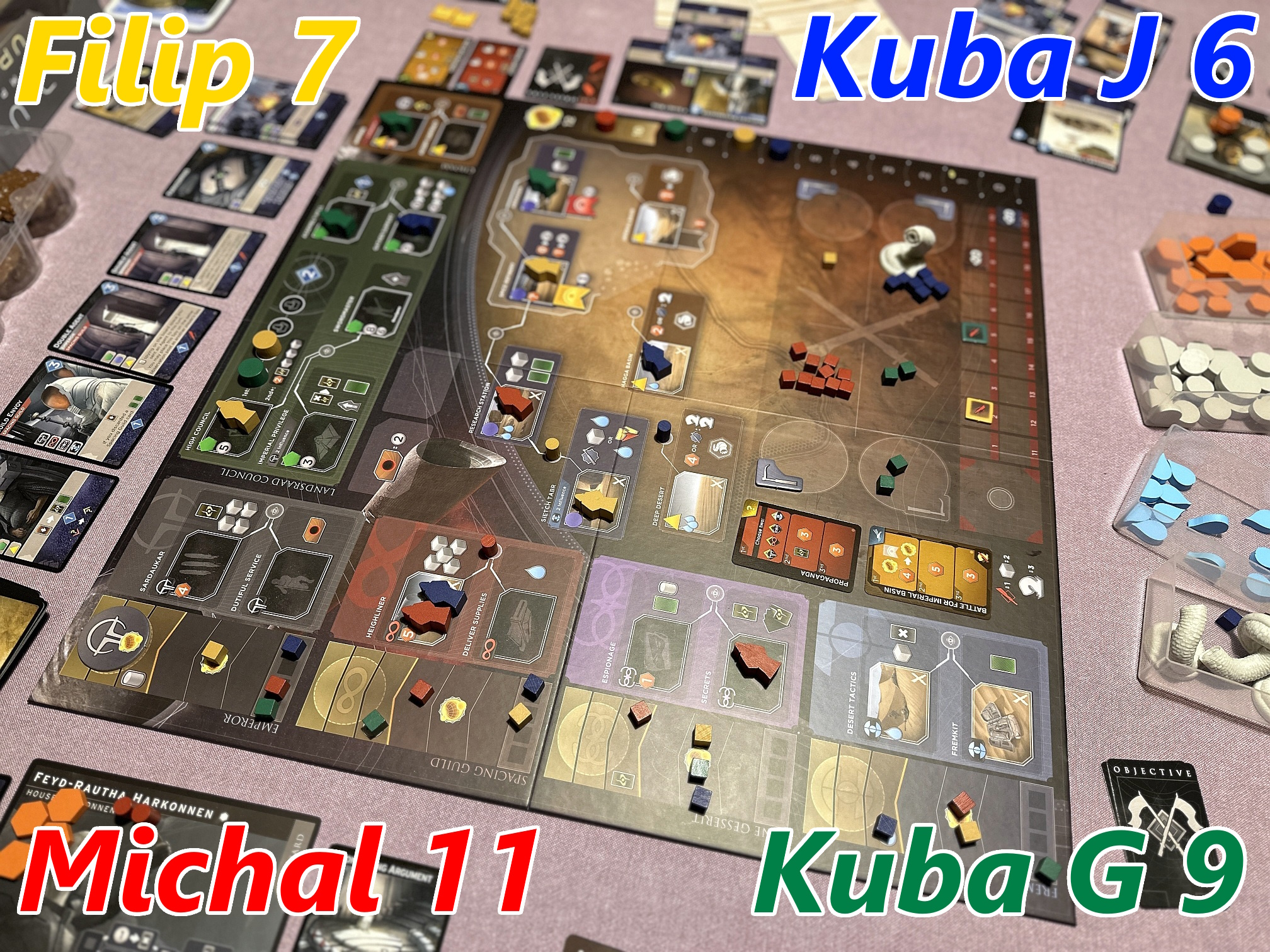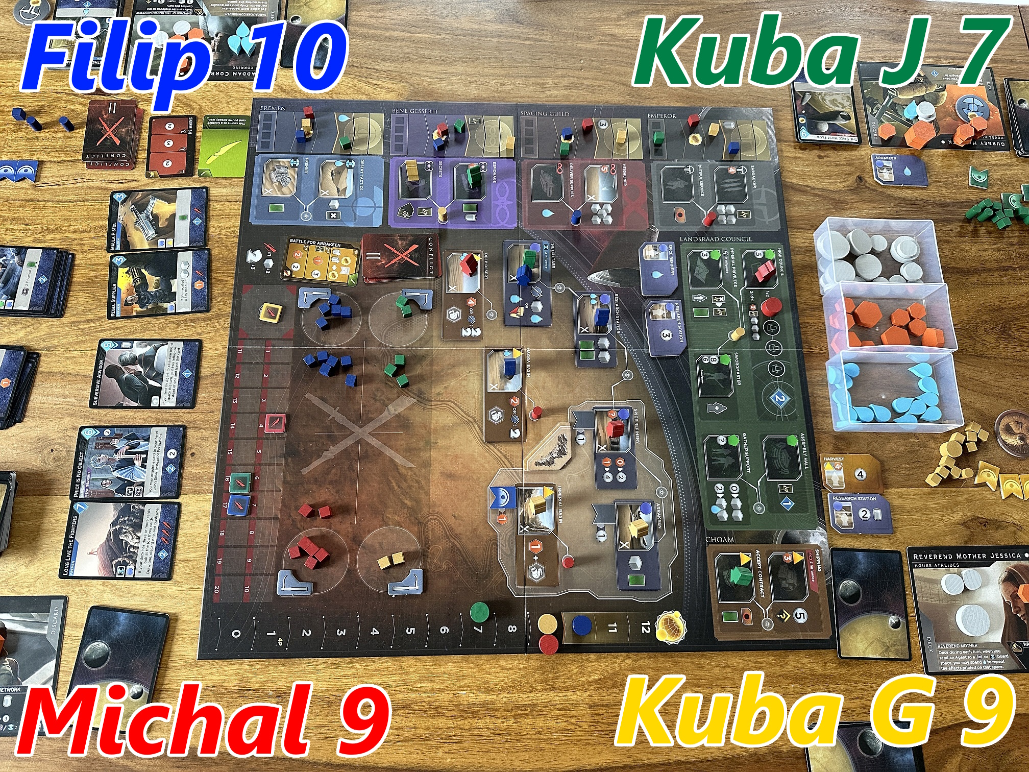 Our initial sessions were held with four players, the maximum (not counting Team Mode) and probably at the same time, the optimal number. Everybody – with exception of me – were first time playing any of Dune: Imperium games; thus it was also a great time for them of discovering that fantastic system. Not long ago after the first play, we brought this title to the table for the second time. It was good we had the same set of players as it allowed for similar level of experience among us. And of course, we had also a lot of fun!