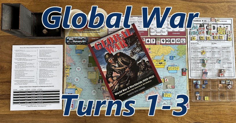 Global War: World War II Worldwide 1939 1945 by Ben Madison & Wes Erni is a solitaire wargame which allows you – in reasonable amount of time – to reenact largest military conflict in human history. That one is also another of title in the famous State of Siege series.
