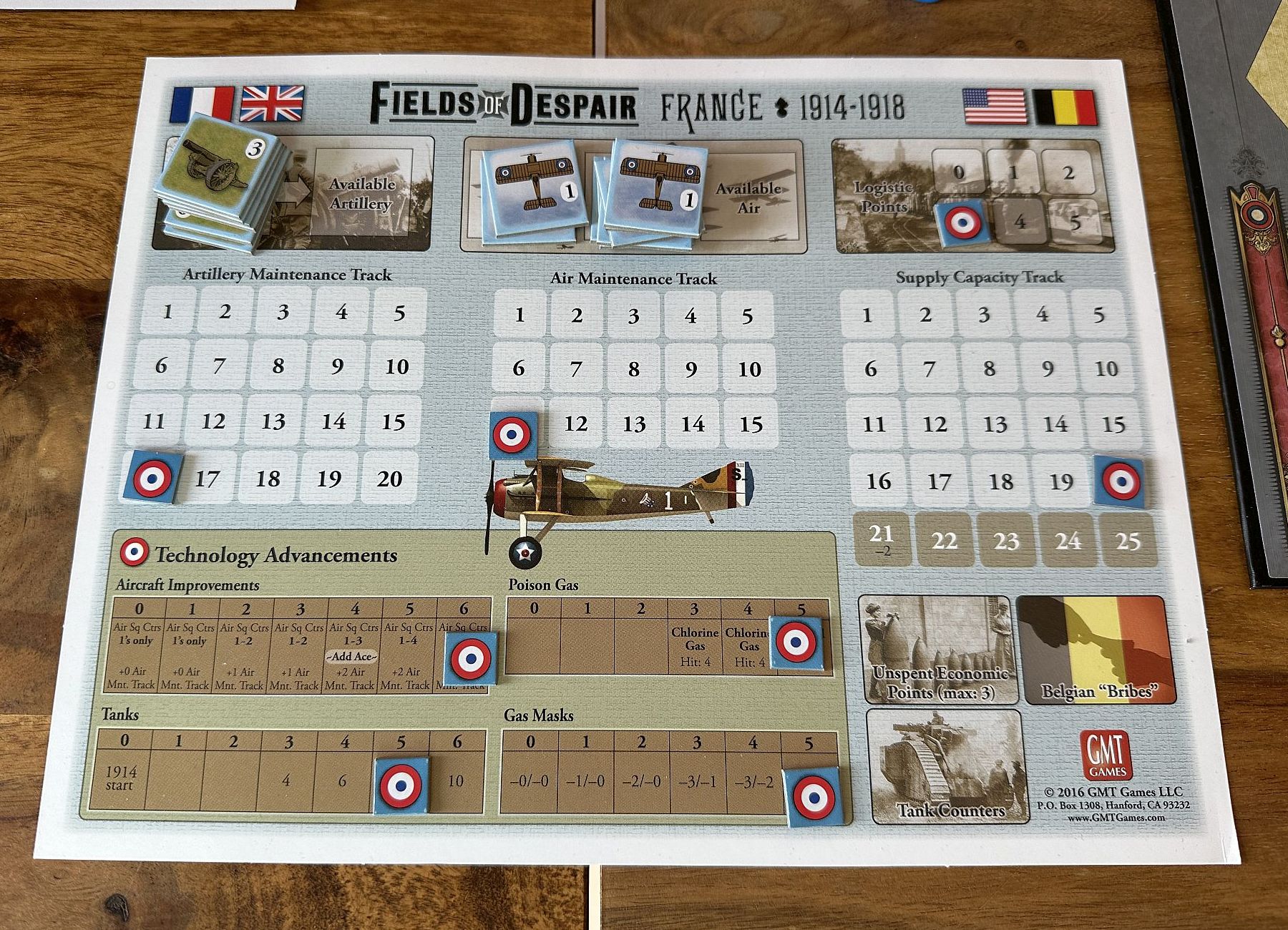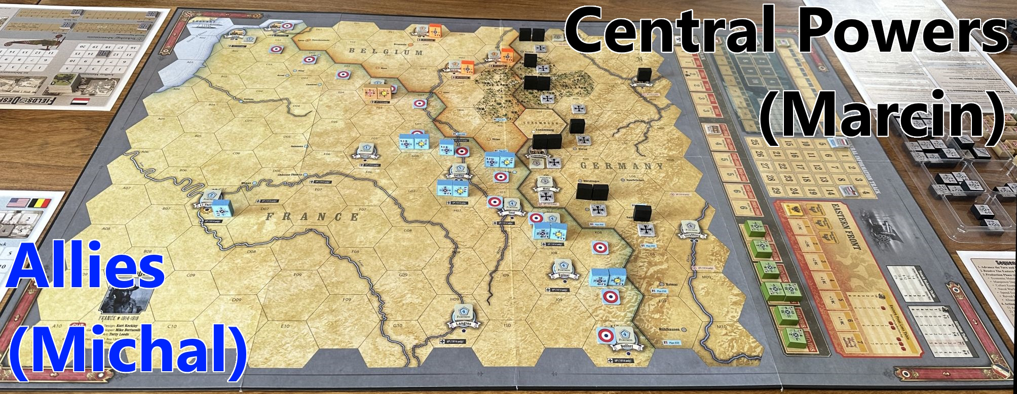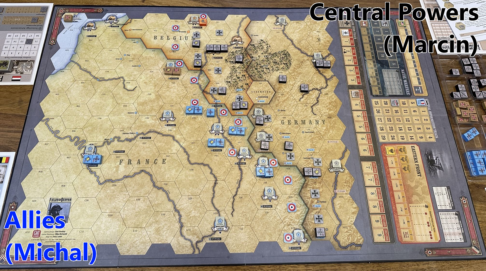The Fields of Despair: France 1914-1918, a wargame designed by Kurt Keckley and published via GMT Games, was on my and Marcin’s radar for a long time. We were really intrigued how the The Great War on Western Front will play using the blocks, hidden information and multitude of auxiliary systems like Economy, Attrition, US Entry, Eastern Front, etc. Finally, we managed to organize a copy of the game and play – first the introductory scenario and then – the great campaign!