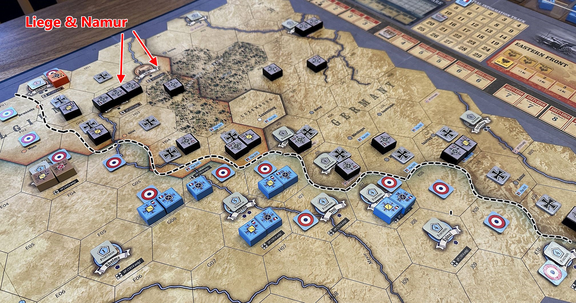 The Central Powers have Initiative and go first. It is important to note that 1914 scenario does not begin in a state of Trench Warfare. In 1914, combatants were highly mobile which is reflected in game play. A global state of Trench Warfare begins on Turn 4 – as we shall see in next, Campaign scenario.