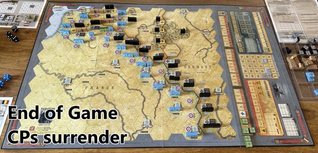 In the end, I am very glad I spent those several evenings with Fields of Despair. It was a great experience, giving a lot of insights also into the historical events. The system is well designed and usually gives a lot of fun. Would be interesting to see this replicated for Eastern Front – especially as it was much more mobile theater!