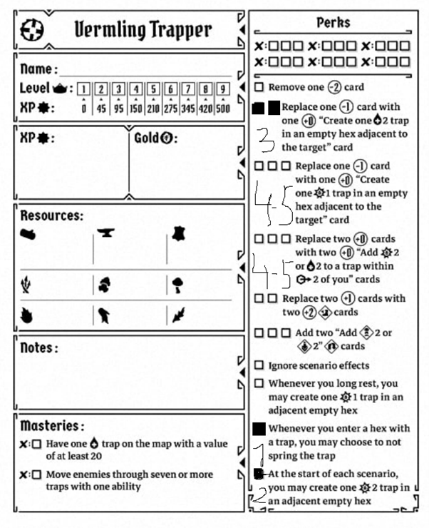 2. Trap at the start of a scenario: This complements the previous perk, allowing for the immediate creation of traps at the beginning of a scenario, further fortifying your position.