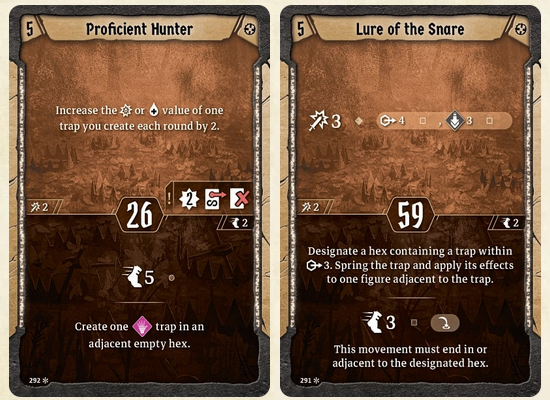 - Level 5 – I chose Proficient Hunter for its solid initiative and high movement, combined with the ability to create a trap using its bottom action. In rare cases where shorter scenarios require more damage, you can use it for the upper persistent bonus. With a limited hand, playing any persistent bonus or lost card (such as Electrified Net with three stun traps) requires caution, as it reduces the number of actions and possibilities.