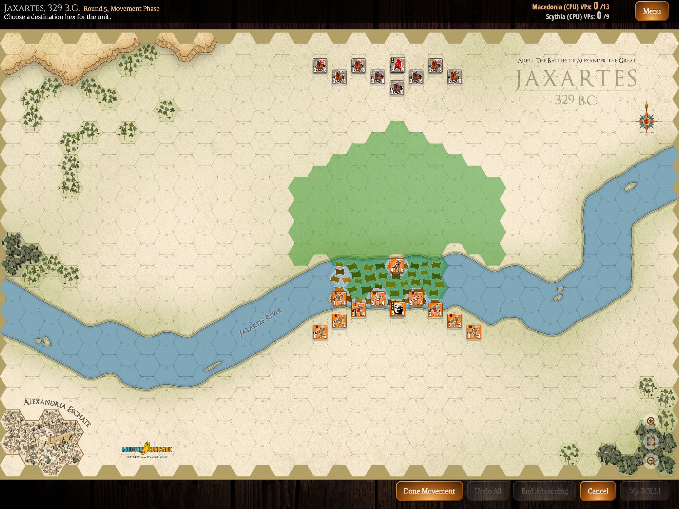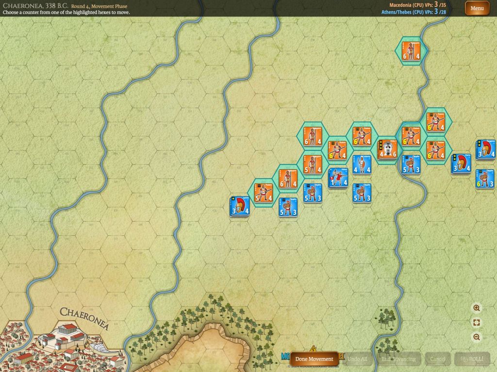 Bill: Right now I’m just fixing little bugs that come up. I want to make sure Arete is in a good place before I move on and, once it is, I’ll explore other ways to use this same hex-and-counter system. Historically, Julius Caesar seems like the logical next step and I’m interested in continuing with Ancients for the immediate future. I’d like to also have some fun with it and release a fantasy hex-and-counter game like the old War of the Ring and I have a few other non-historical ideas. In addition to that I’d like to have some non-hex games mixed in there (that hopefully don’t take three years to make). I’ve always wanted to make a WWII submarine game and a WWI air combat game but right now those just live as ethereal ideas.