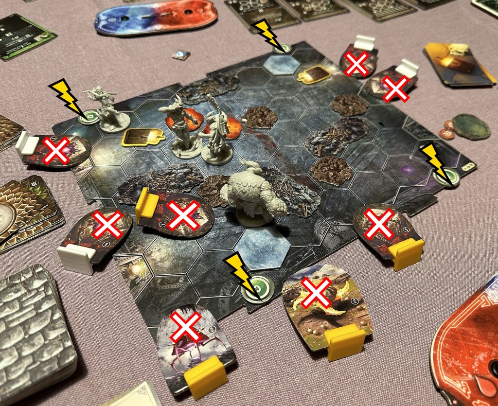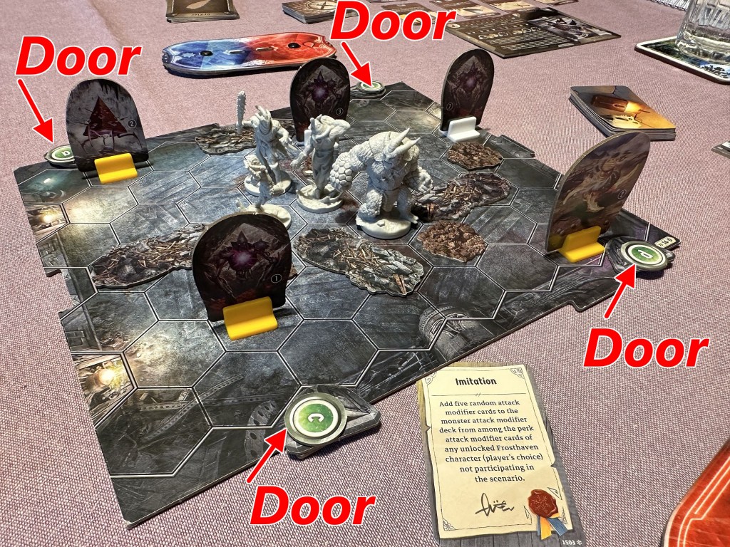 The way we played this scenario you can clearly say was an example of masterful tactical planning. In Frosthaven you cannot just start playing the scenario, thinking “things will sort-out somehow”. Nope, you need to start planning from the start, to mitigate the risk factors and focus on main threats. Just like doors in above adventure, which we attacked and destroyed not paying too much attention to any damage we could receive. Great game!