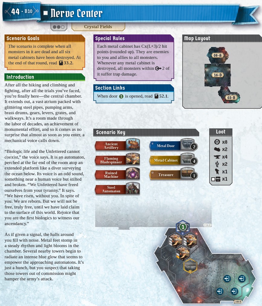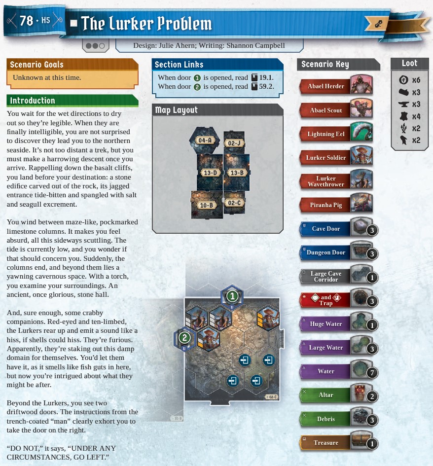 First of all, it is important to note that this scenario is on critical path to resolve the Unfettered Spire mystery. In other words, it brings us pretty close to the end of the game! From the description of the goal it seems straightforward – close four doors. But this is easier said than done – in order to do it you need to hit them hard and survive the constantly spawning enemies. One dot below scenario name (which reflects complexity rating) is definitely not enough.