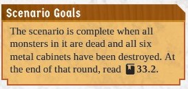 My infuser gots angry while reading that “little help”. Finishing off lots of monsters, weakening them with muddles or wounds, maybe no impressive actions with massive damage, but reliable. First round with disarm – i could immobilize 2 enemies and disarm, made all enemies unable to hit us(if they survived we could easily stand outside their range) the end of the second room would be much easier if some character wouldn’t go selfish and sacrificed 3 or more turns to claim the treasure chest (sure cabinet was close, but the main reason to get there was the chest) . Fairly easy scenario, the cabinets were huge help dealing tons of damage to enemies(maybe even over 60 damage along the scenario, as much as 4 elite monsters), especially against enemies with high retaliate and shields.