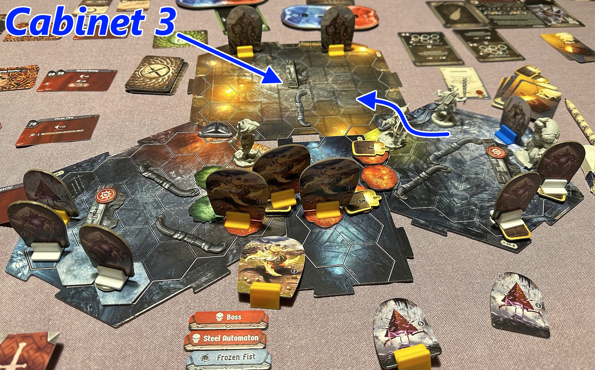 Thus the last scenario starts with us in the middle of the Unfettered spire, with our Orphan Ally trying to reconfigure machines. He does it via special cabinets where he needs to spend from 3 to 5 turns to change machine control programs. Automatons of course will not idly wait for their fate and will put up a lot of fight…