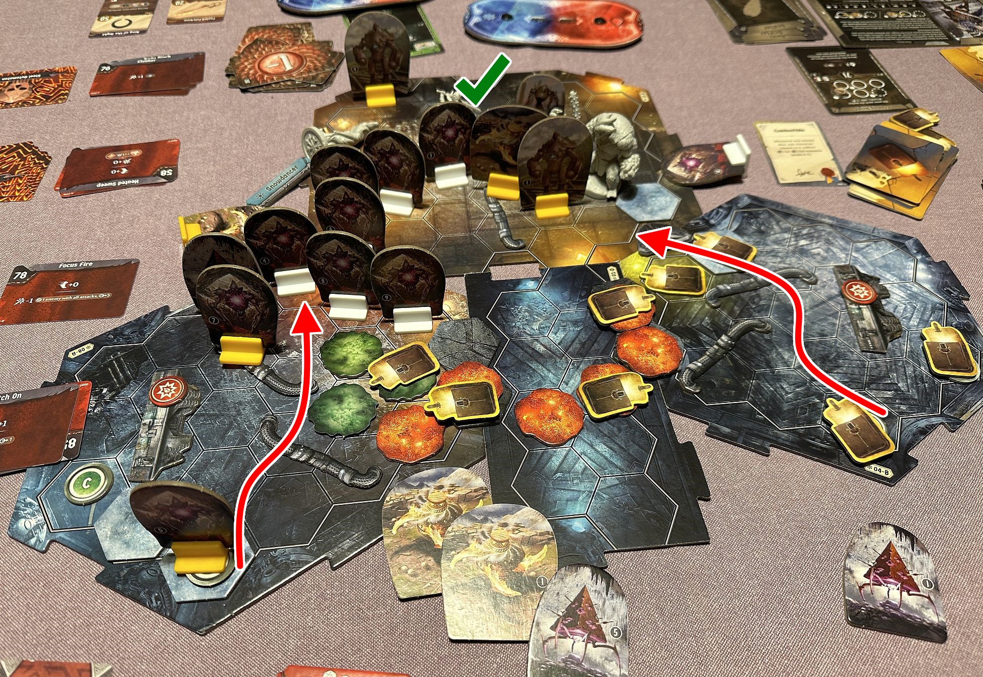 We try to follow usually morally positive choices, so we went for a reconciliation path. To our surprise he was receptive and agreed to lay down weapons and start living in harmony with Frosthaven inhabitants (not sure how we managed to be so convincing, but it worked out). However, his pretorian guard – mainly Steel Automatons – did not wanted to hear about the peace and simply loathed the idea.