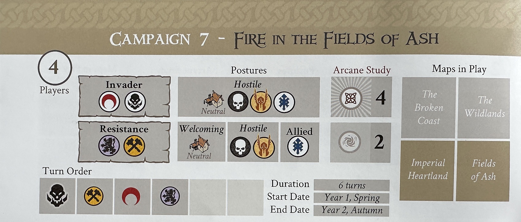 - The Chronicle of The War of Burning Banners – contains starting positions for ten of the twelve years of the war. This allows players to set-up a single 3-turn game from any year in the war, to the entire twelve-year war.