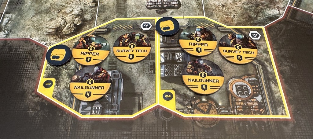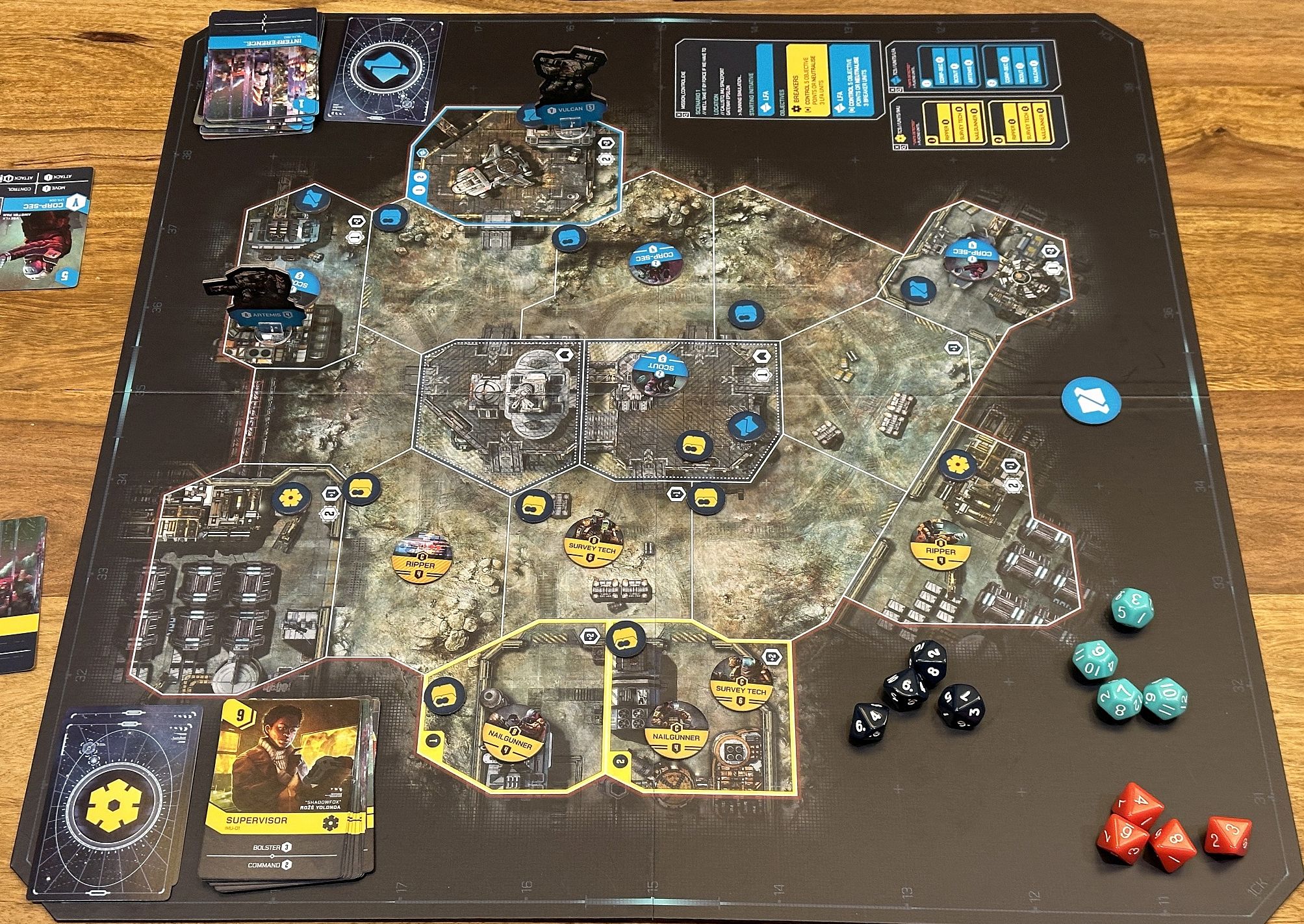 We considered a wide-range of other ideas, drawing from the way we treated vehicles in Undaunted: North Africa, Normandy, and Stalingrad. In the end, we went with a solution that echoes each of those in some ways, but ends up as something new and different, and helps evoke the feeling of managing a mech with multiple people.