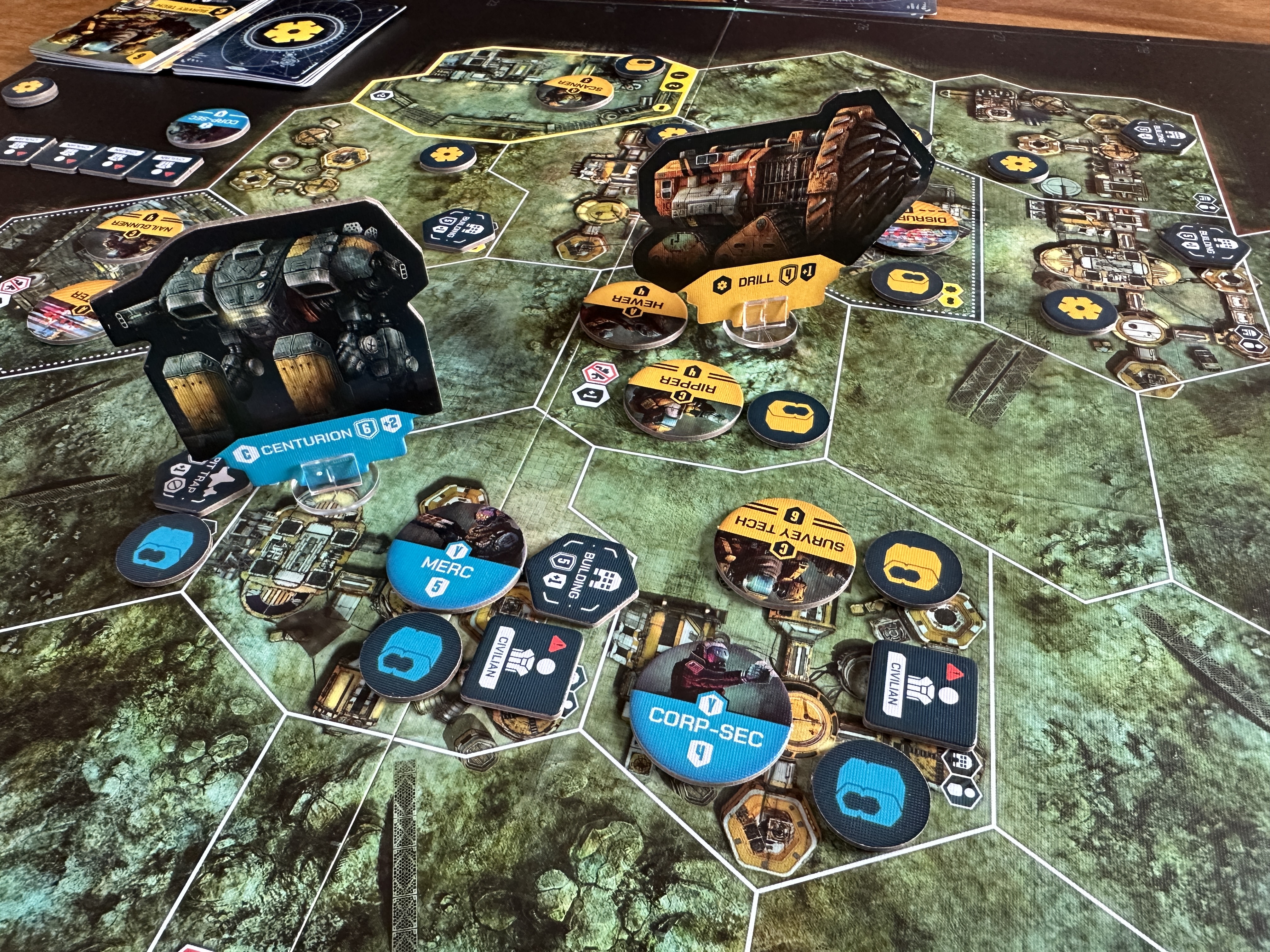 Michal: I was also looking forward to the solitaire system in Callisto. It is very elaborate and allows each battle to be played solo, either as the Corporate or Miners faction. Please tell us a little more about it and your intent when designing that mode.