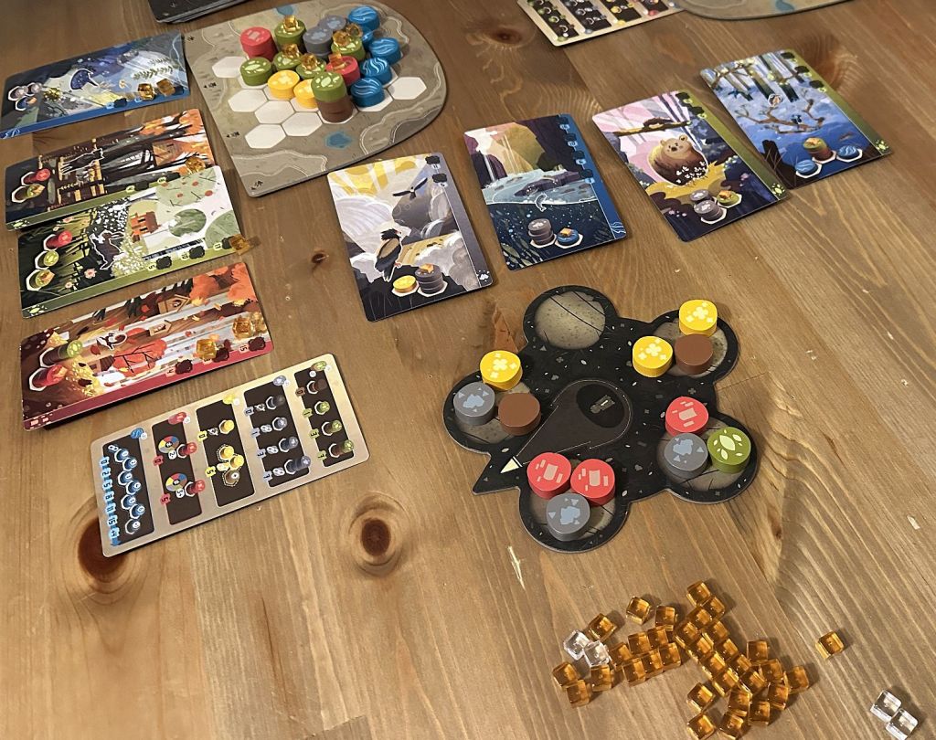 Ten przepiękny i wciągający tytuł oczywiście musiał z nami przyjechać. Zwłaszcza, że Ania jest jego fanem 🙂 Był grany na koniec pierwszego dnia, w późnych godzinach wieczornych; z początkowych czterech graczy do końca dotarło trzech. Wygrała Magda K z 93 punktami (Ania 89, Magda S-W 74). Na pewno to nie był ostatni raz tego tytułu na sylwestrowym stoliku planszówkowym.