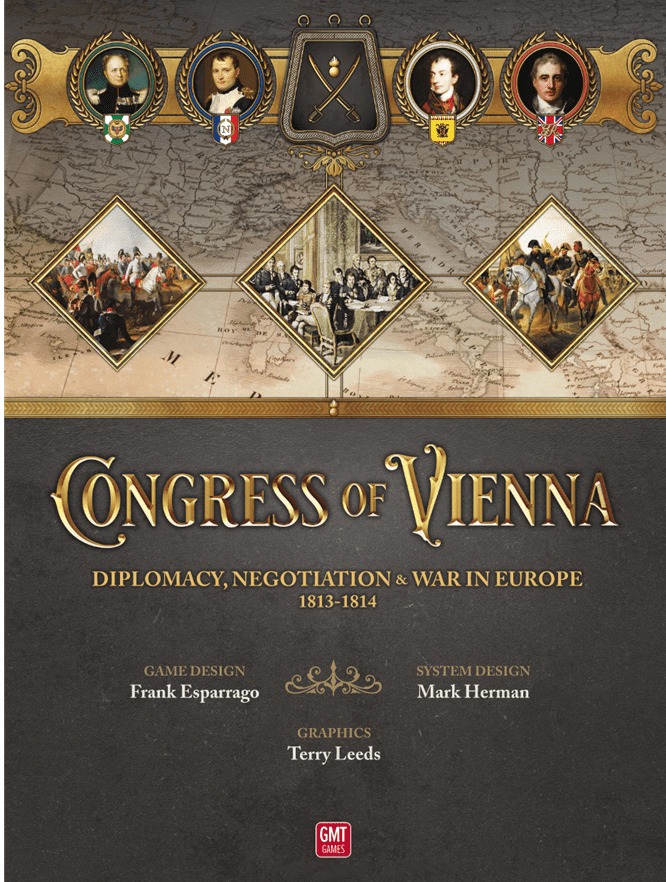 Congress of Vienna (CoV) is a diplomatic Strategy CDG for one to four players. It is based on Churchill, the superb, award-winning Mark Herman design. It allows players to become the main characters of the dramatic, titanic struggle between the struggling Napoleonic Empire and the coalition of Russia, Austria, and Great Britain (with their Prussian, Spanish, Portuguese, and Swedish allies).