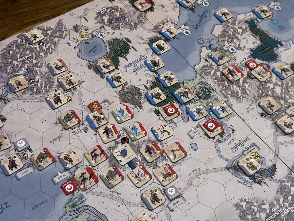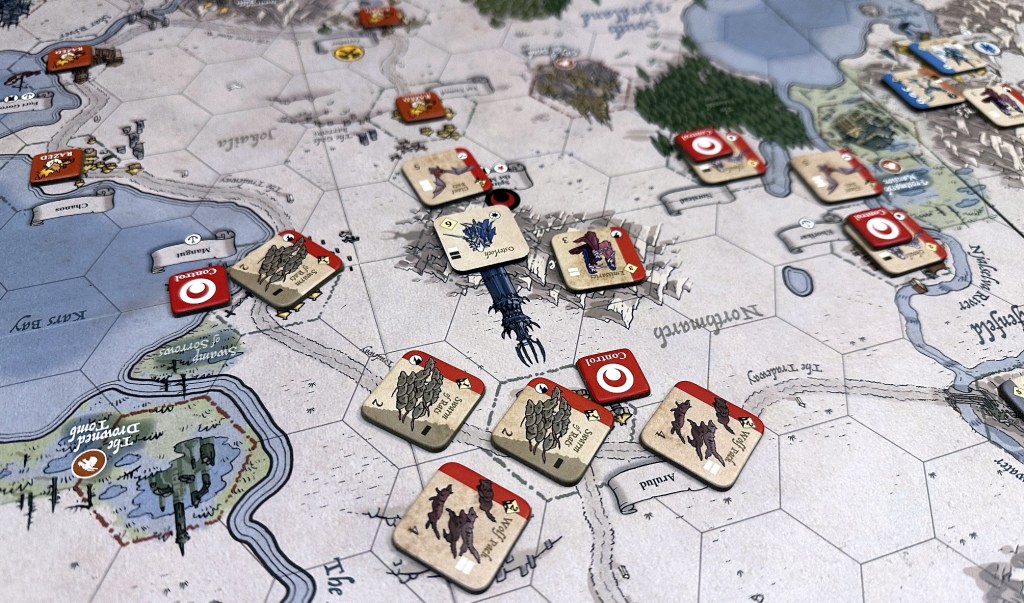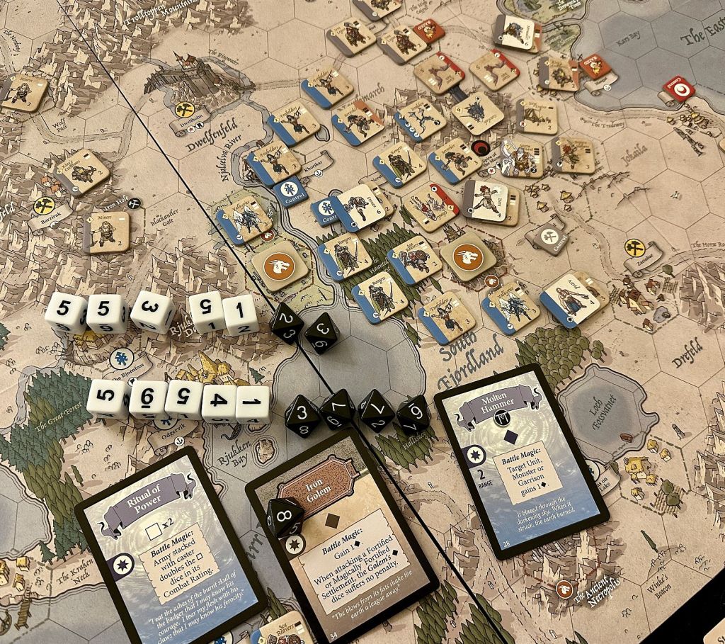 While army-wise both sides were initially equal, economically the difference started to tell pretty quickly. And once you get through the defense perimeter to be adjacent to Spire and block the recruitment there – the end of the Undead is slowly becoming more realistic. Thus my 2.5/5 scenario balance evaluation.
