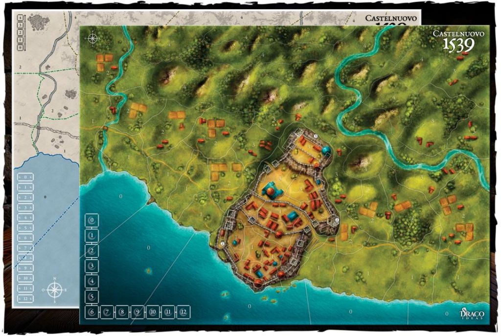 Francisco: The game depicts the epic siege of Castelnuovo (actual Herceg Novi, in Montenegro), that took place during the summer of 1539. In 1538, Venice, being attacked by the Ottoman empire, accepted to enter a Holy League with the Pope and the Emperor -and king of Spain-, Charles V. They mustered a big fleet and army and sailed to defeat the Ottoman one, led by the ablest of naval commanders, Hayreddin Barbarossa. The Christian fleet was defeated by the Ottoman in the naval battle of Preveza and they tried to amend the campaign by conquering an Ottoman fortress on the Adriatic coast. Castelnuovo was the chosen one. It was taken with ease, as it was only garrisoned by 600 ottoman troops.