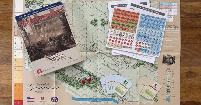 So Germantown 1777, designed by Mark Miklos and Bill Madison and published by GMT Games in 2010, is a hex-and-counter wargame simulating the October 4, 1777, Battle of Germantown during the American Revolutionary War. Players control either the American forces under General George Washington, attempting a surprise attack with 11,000 troops, or the British forces under General William Howe, defending with 9,000 troops. The game features a single 10-turn scenario, lasting about 2-3 hours, with mechanics like momentum chits to influence combat and initiative.