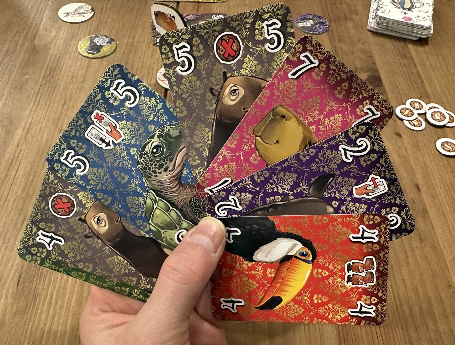 Ten tytuł w ogóle nie powinien się tutaj pojawić. Kompletne zaskoczenie wyjazdu, impulsywny (proroczy?) zakup Jarka w Dino (tak, to nie pomyłka). Gra reklamowana jako super pozycja dla dzieci, która NIE JEST GRĄ DLA DZIECI. Brutalna rozgrywka kto wypchnie swoich gości do sąsiadów żeby zżarli ciasteczka przeciwnika plus duża ilość negatywnej interakcji. Straszne bicie się nawzajem… czyli gra idealna dla mnie, którą pokochałem od pierwszej partii 🙂 Raz wygrał Jarek, raz Agnieszka, raz Łukasz – ale radości i dobrej zabawy mieli wszyscy zawsze!